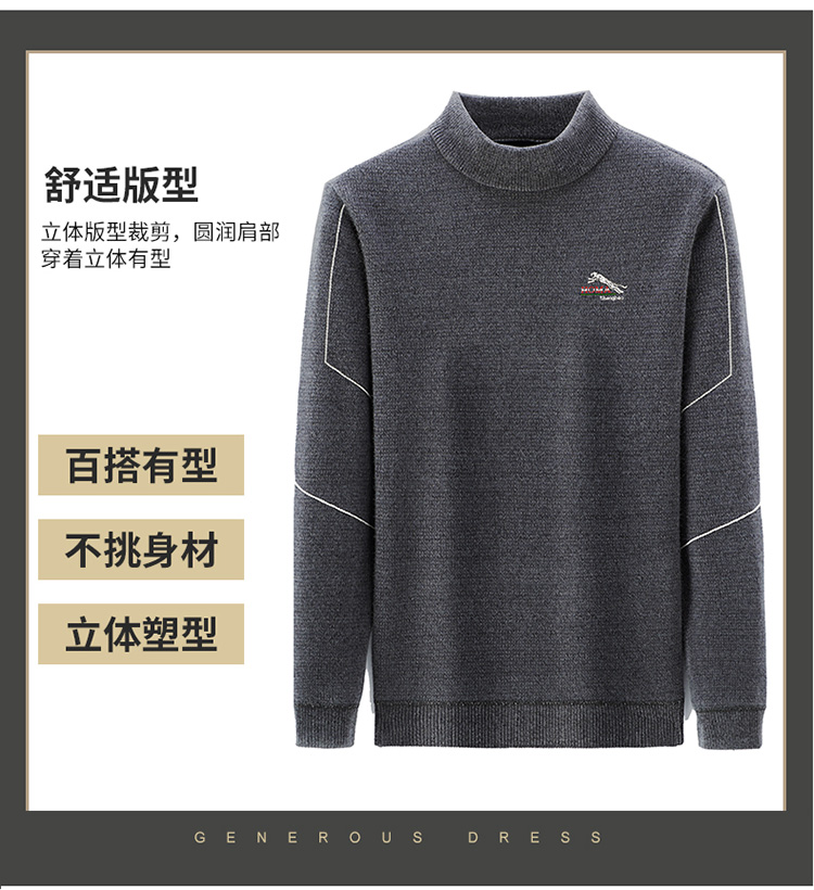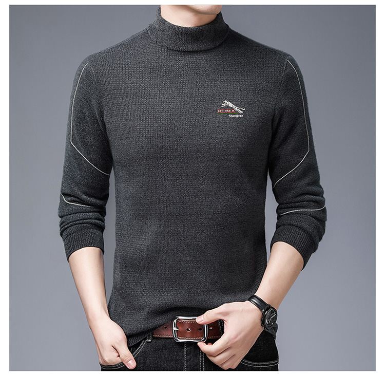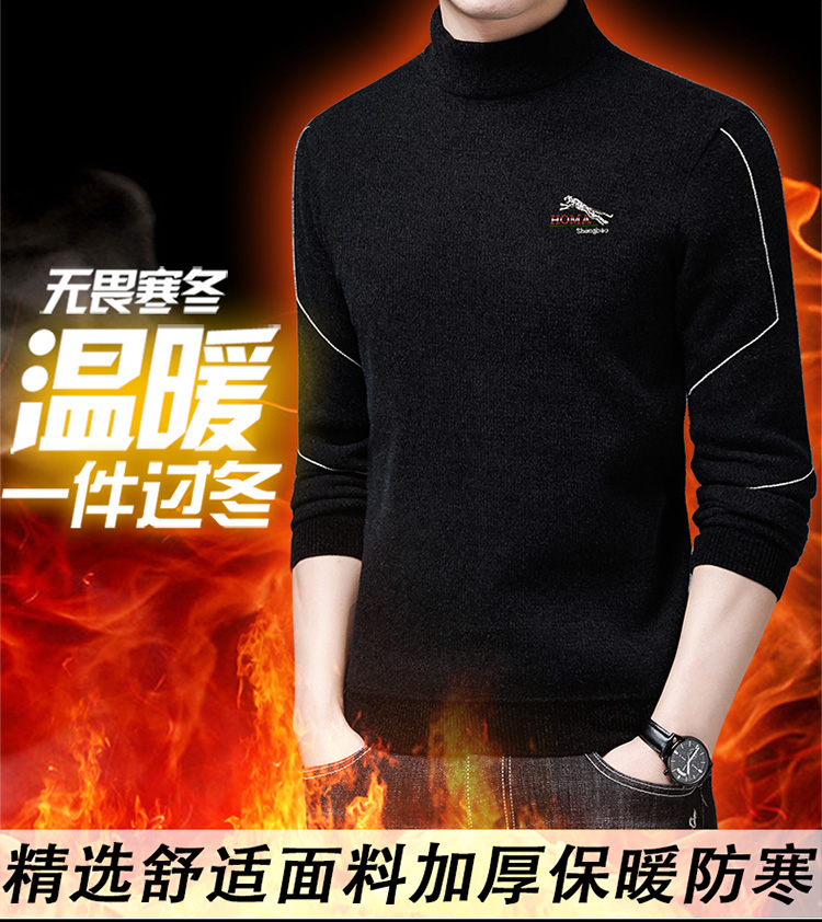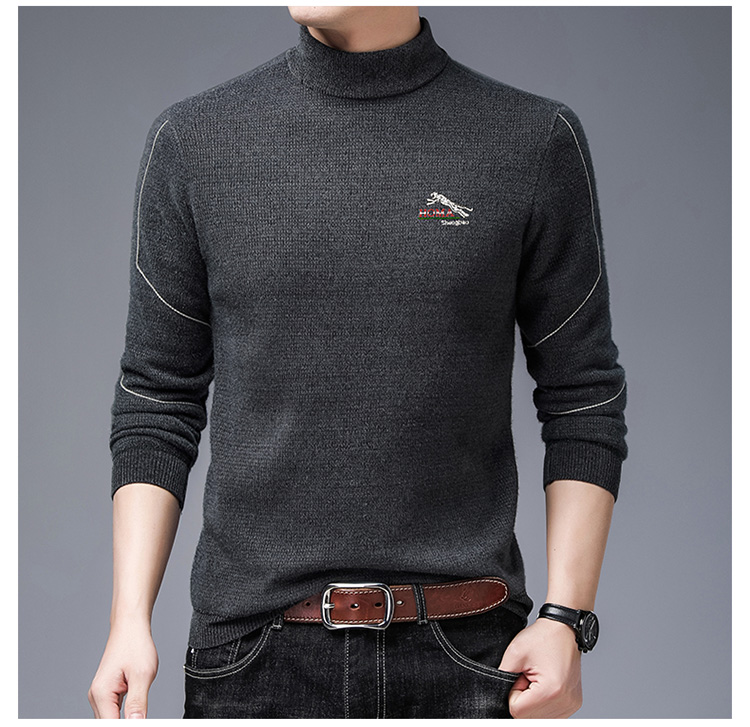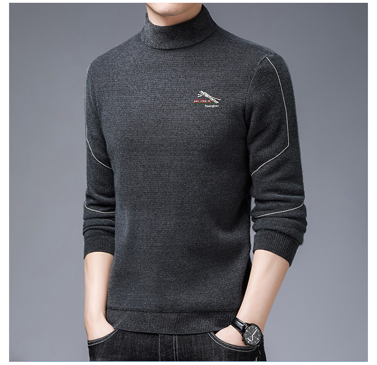 2022 새로운 울 스웨터 남성용 울 기모 두꺼운 가을과 겨울 거북이 목 패션 자수 베이스 셔츠 트렌드