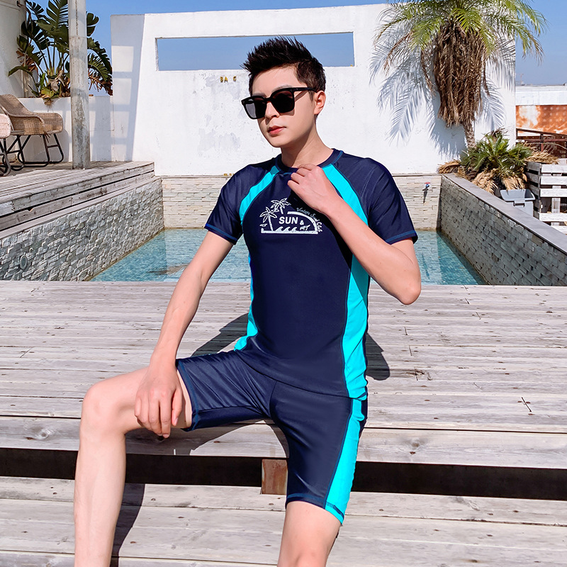 성인 수영 세트 남성용 스플릿 투피스 세트 남성용 자외선 차단제 반팔 서핑 스노클링 세트 따뜻한 온천 남성용 수영복스토어 가기
