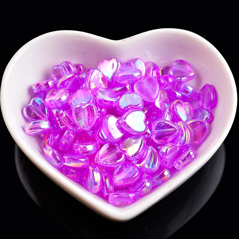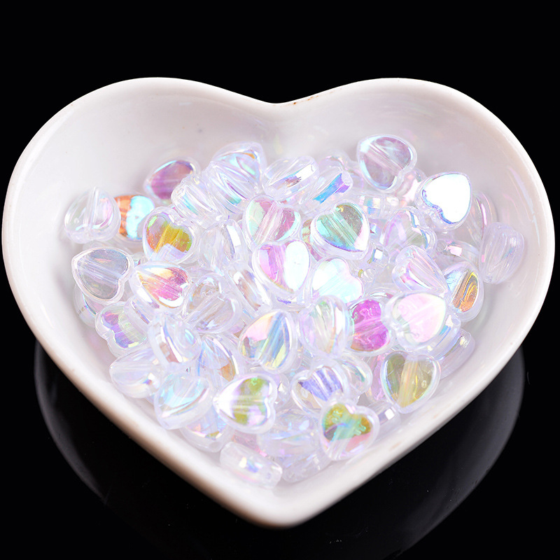 100 투명 AB 컬러 복숭아 구슬 9mm 모조 진주 사랑 느슨한 구슬 재료 가방 수제 페르시 보석 액세서리
