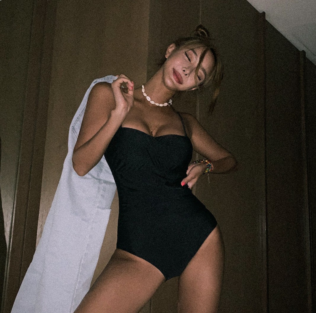 공장 직접 도매 2020 새로운 한국 수영복 여성 보수적 인 배꼽 슬림 스틸 트위스트 백 원피스 수영복 여성