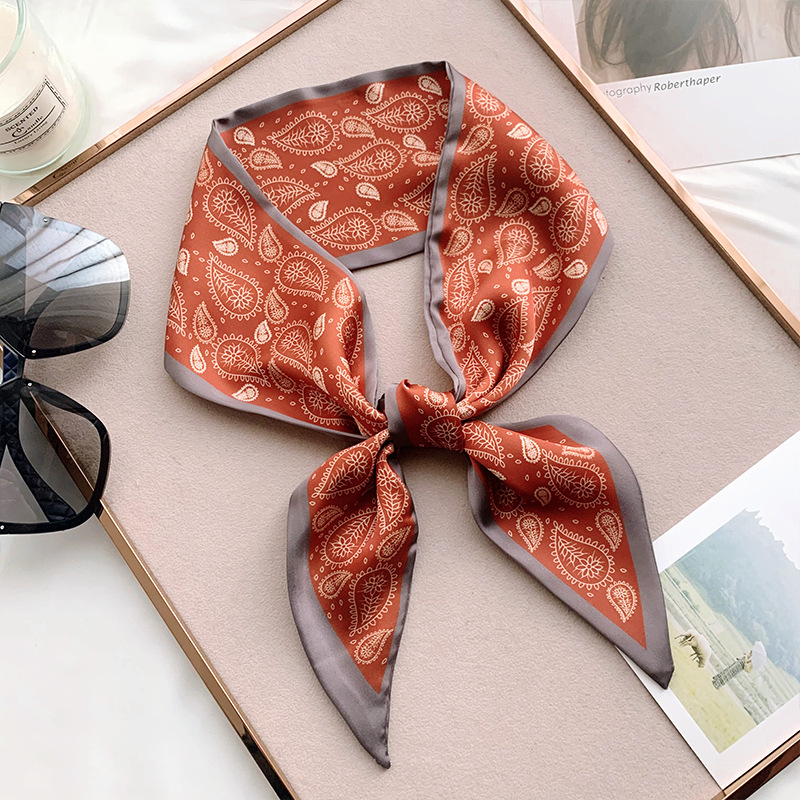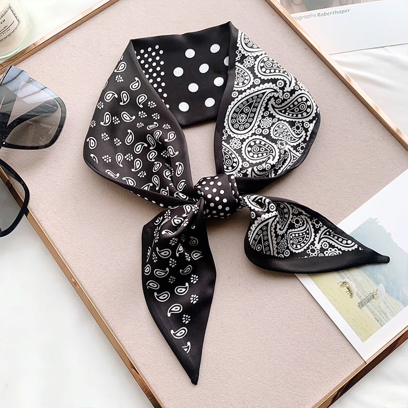 봄과 여름 새로운 작은 실크 스카프 여자의 한국 인쇄 새로운 패션 여자의 좁은 머리 끈 넥타이 가방 장식 스카프 날씬한 리본