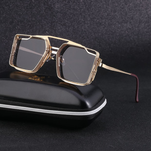 复古蒸汽朋克风太阳镜男士金属镂空方框墨镜男潮双梁眼镜跨境批发