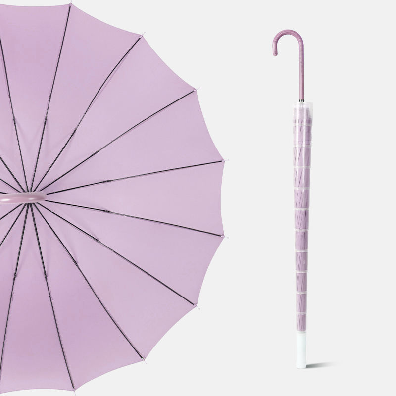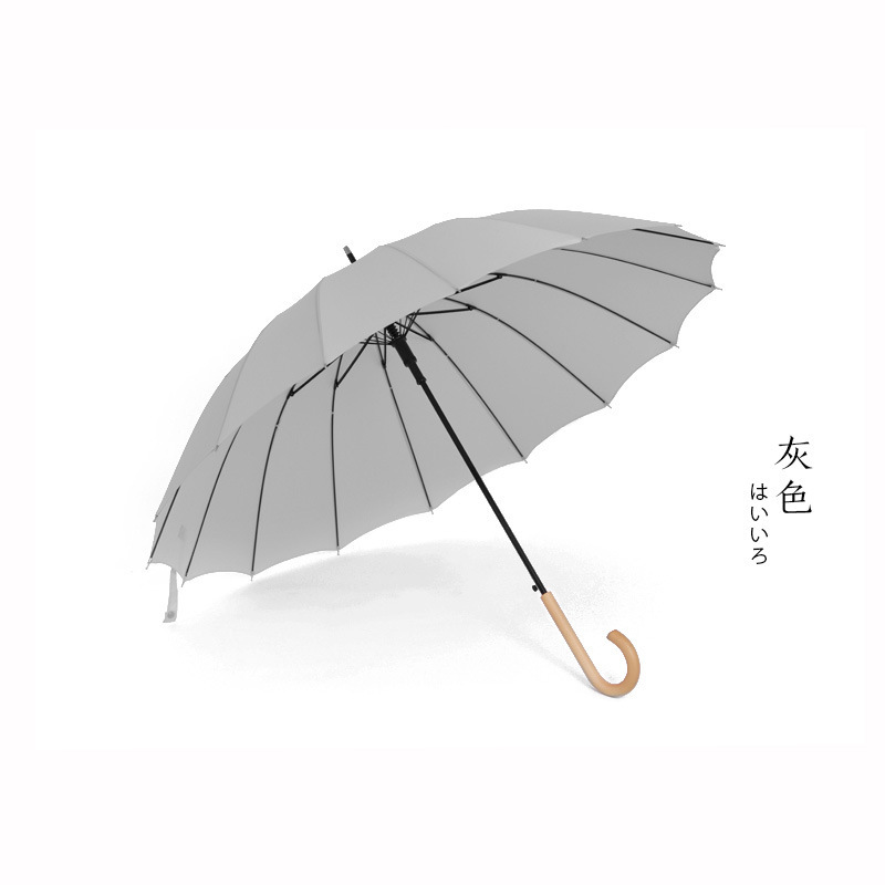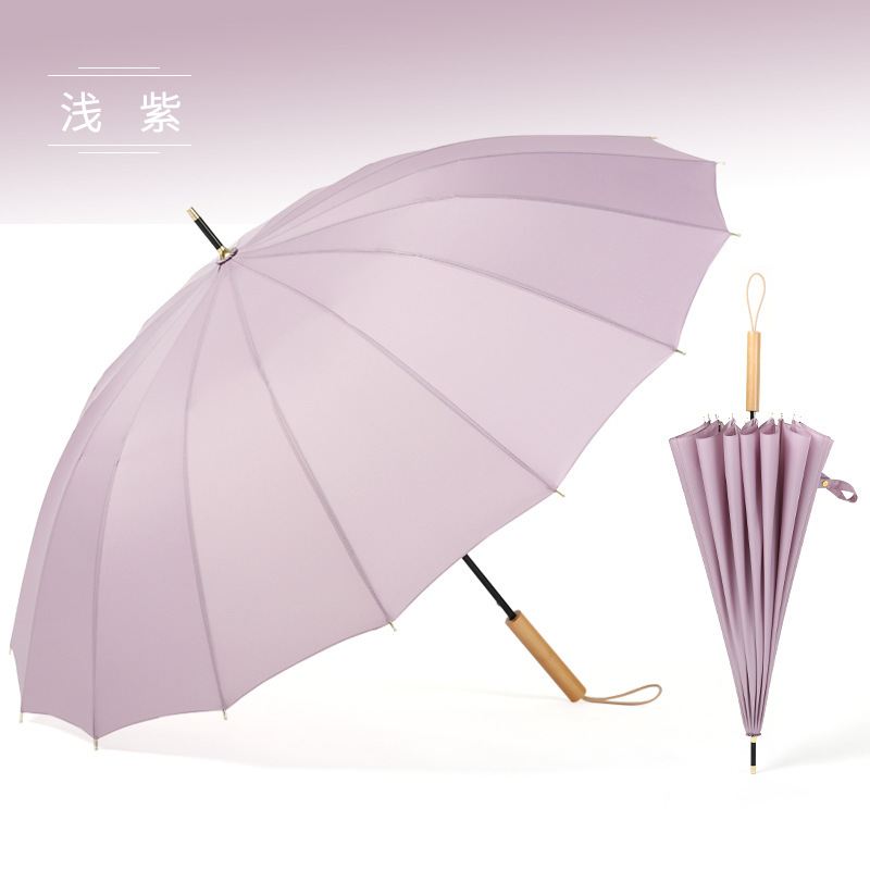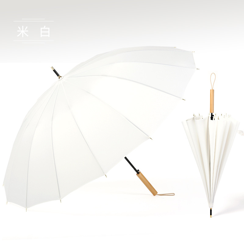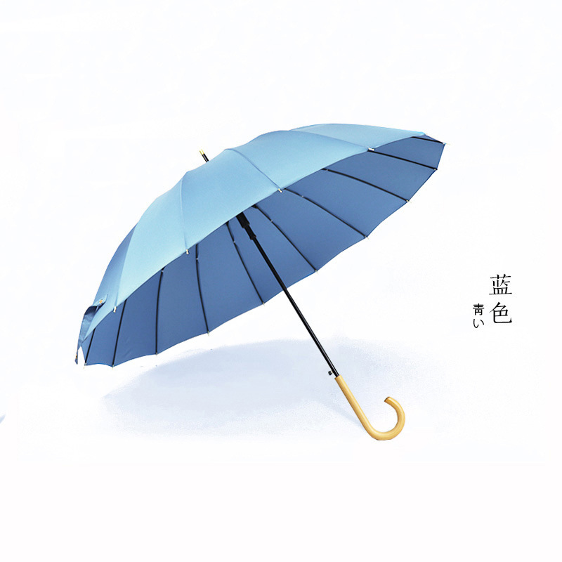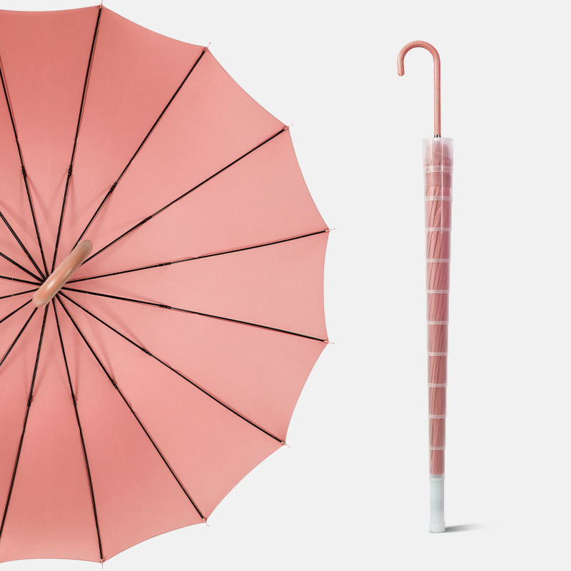 16 뼈 우산 나무 곡선 손잡이 한국 스타일 신선한 스타일 간단한 직선 막대 우산 맑은 우산 여자의 긴 손잡이 자동 우산