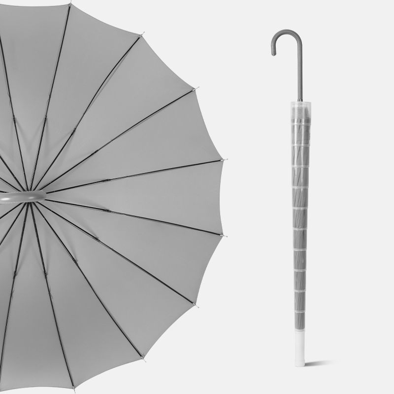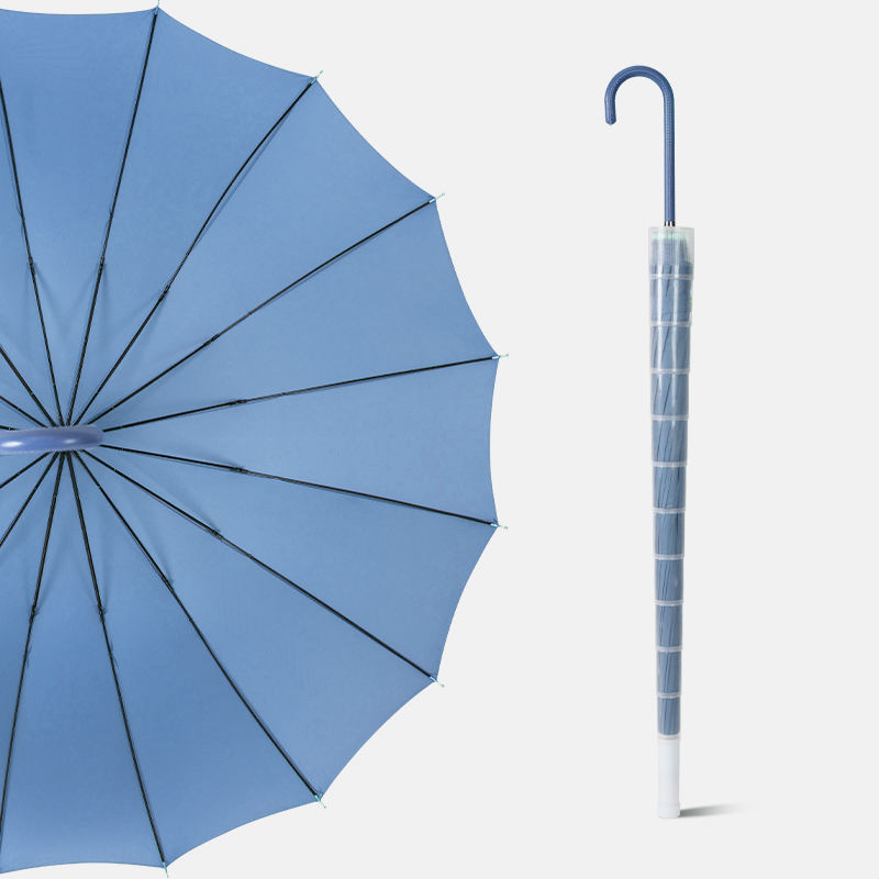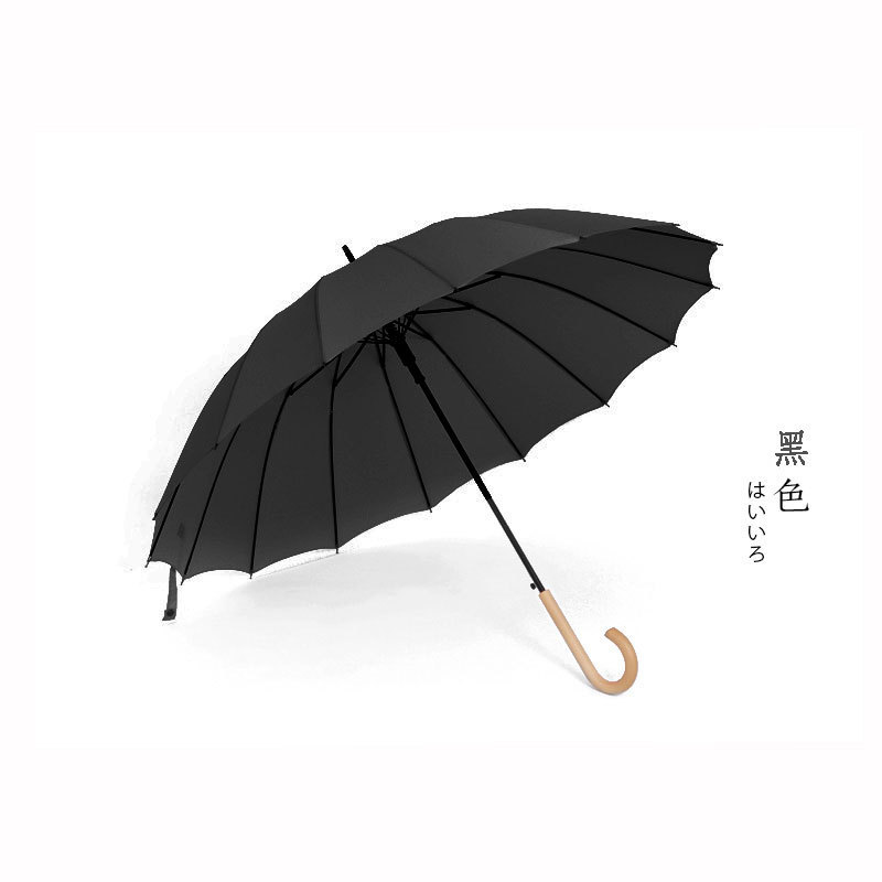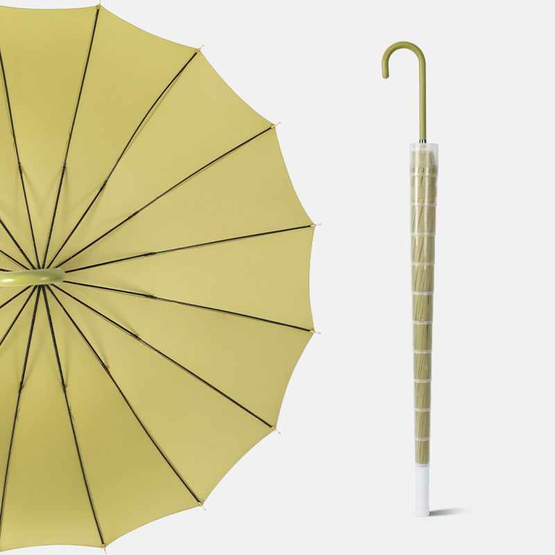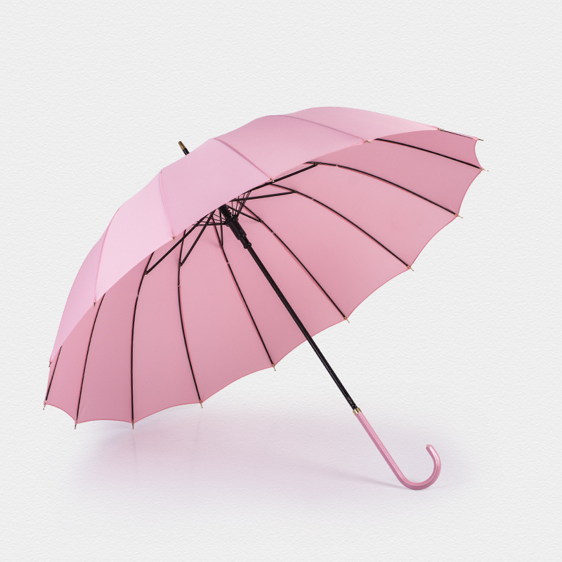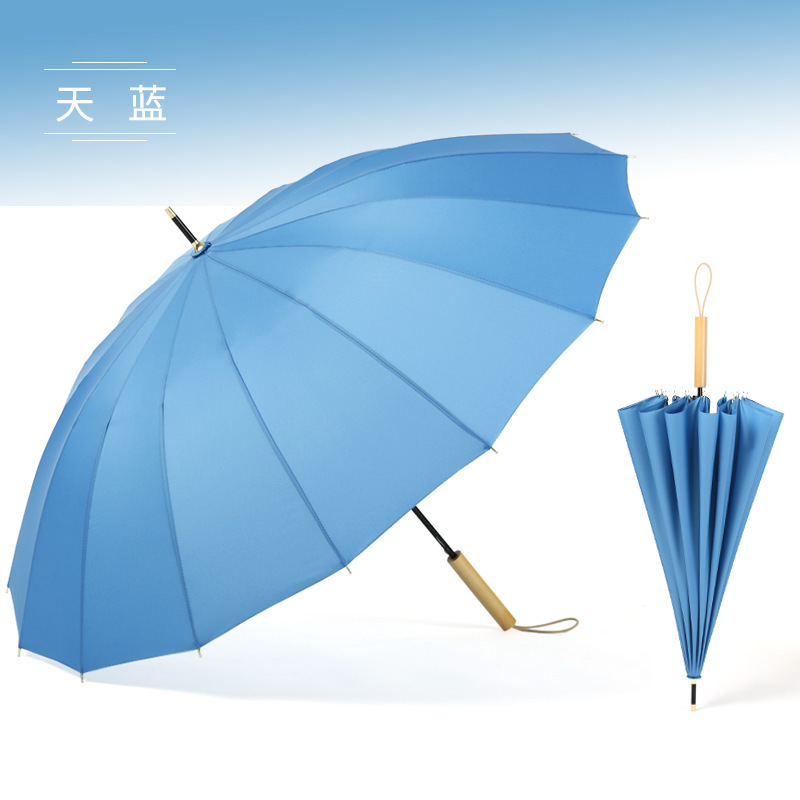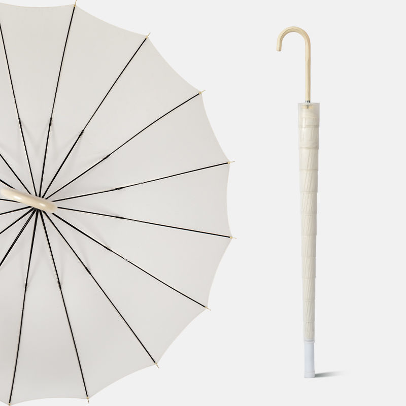 16 뼈 우산 나무 곡선 손잡이 한국 스타일 신선한 스타일 간단한 직선 막대 우산 맑은 우산 여자의 긴 손잡이 자동 우산