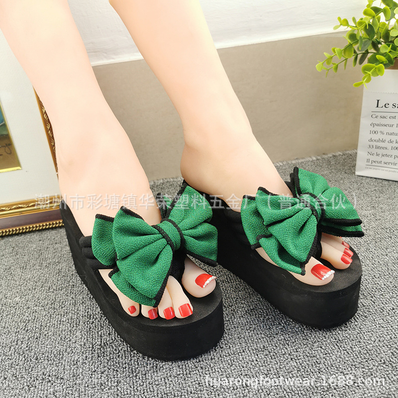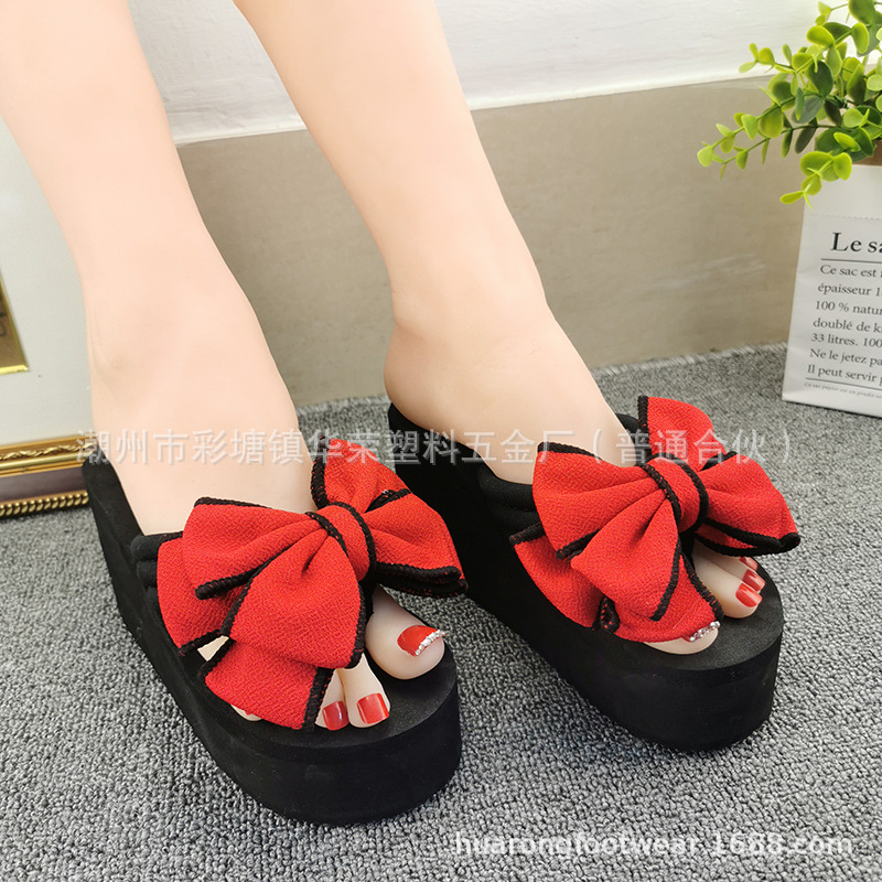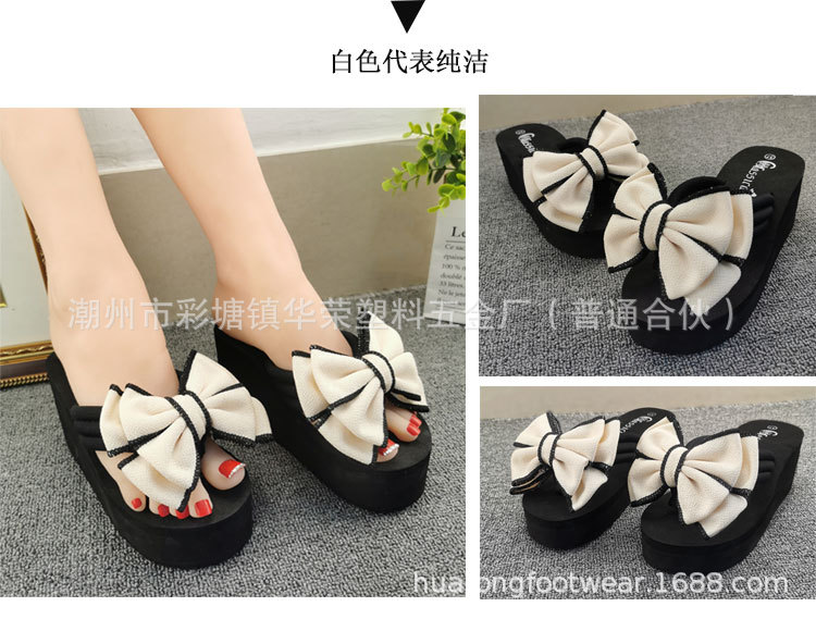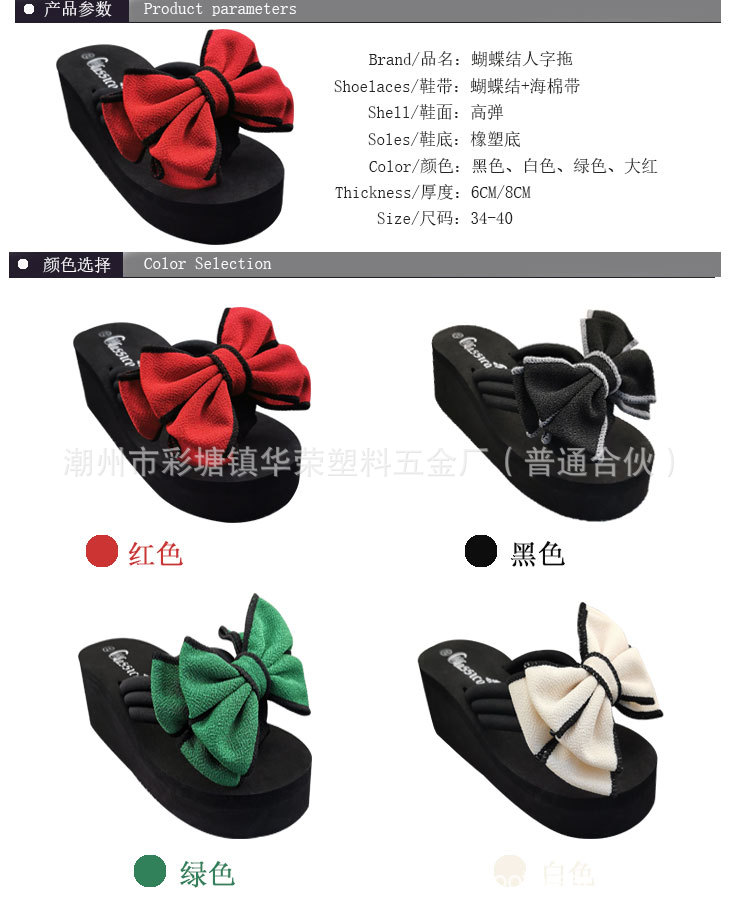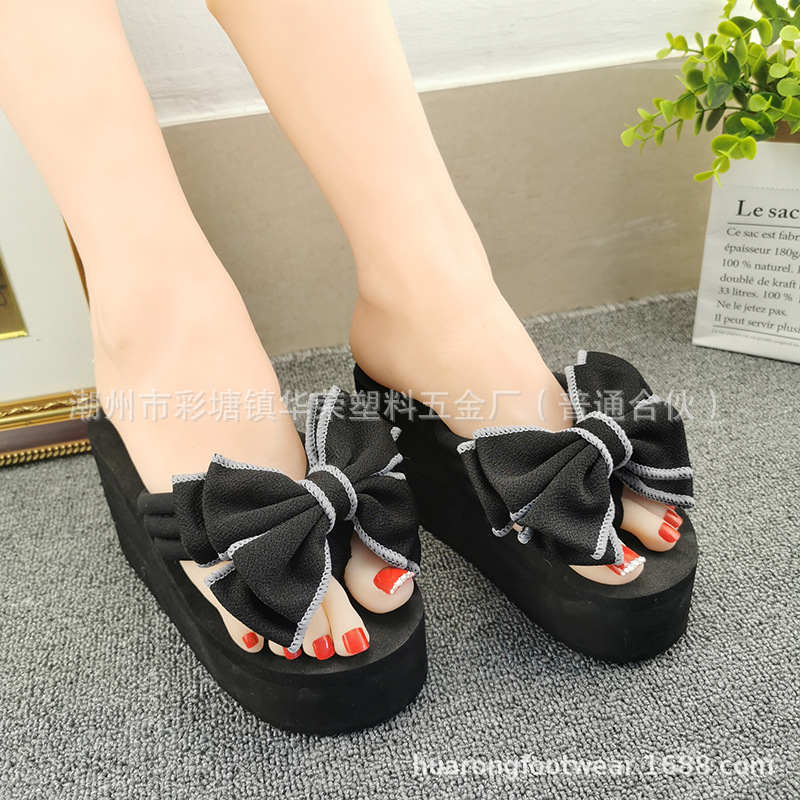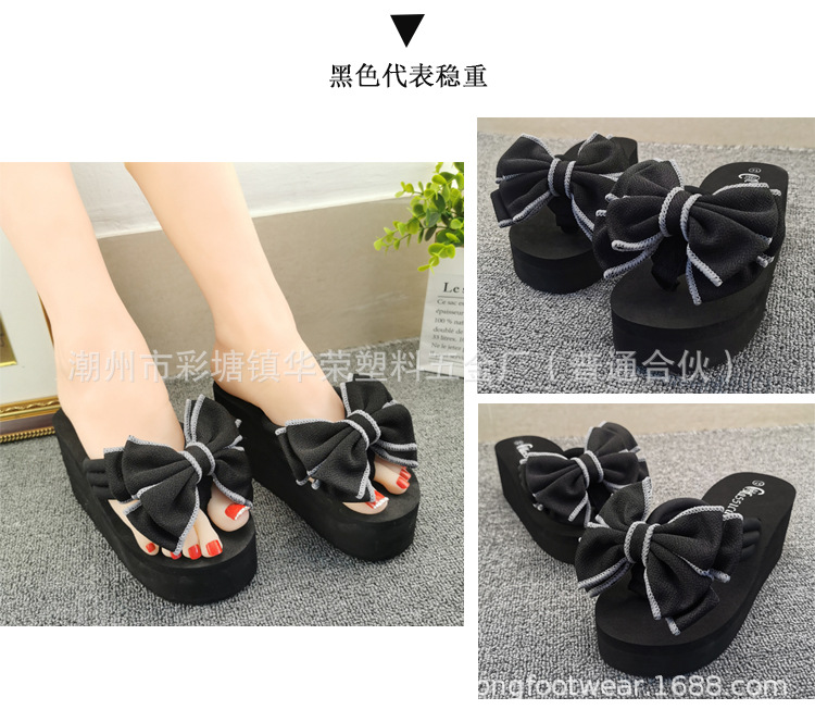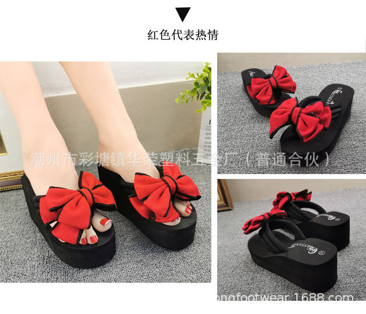6CM8CM 두꺼운 바닥 샌들 여름 새로운 플립 플롭 여성용 겉옷 보우 클립 발 웨지 힐 힐 힐 힐 높이 증가 슬립 플롭