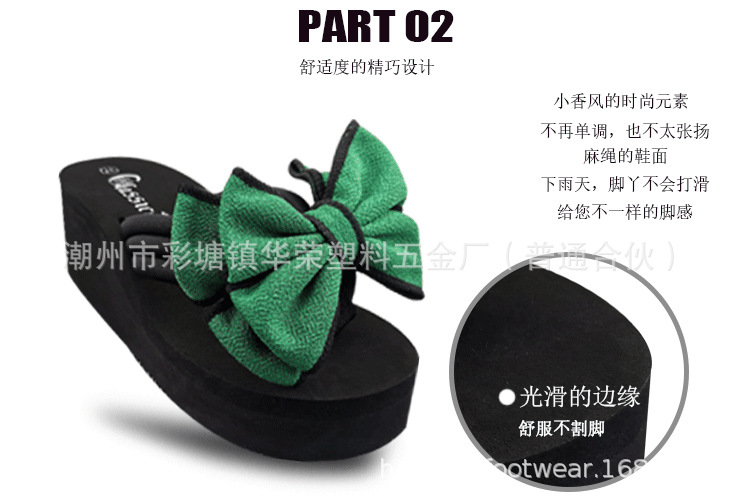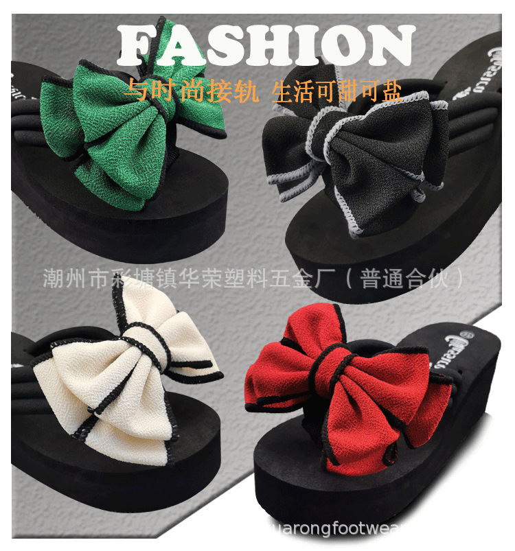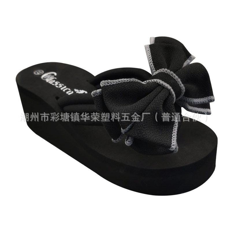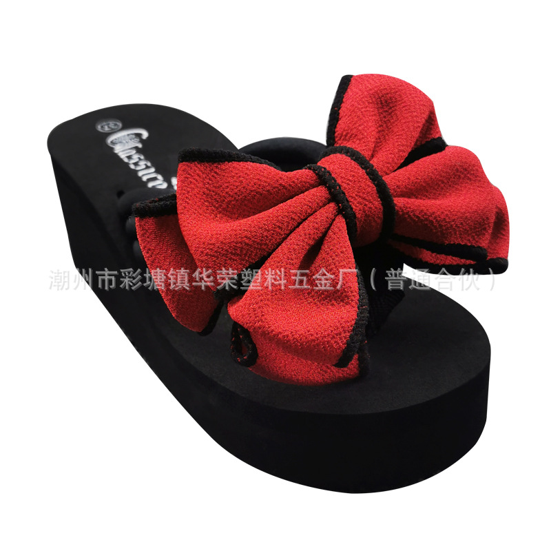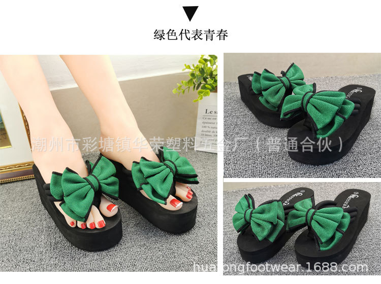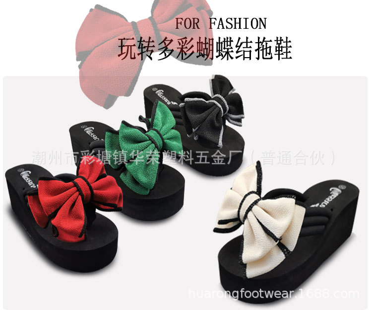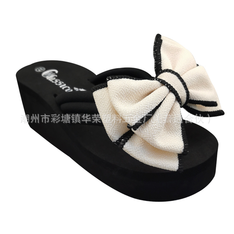 6CM8CM 두꺼운 바닥 샌들 여름 새로운 플립 플롭 여성용 겉옷 보우 클립 발 웨지 힐 힐 힐 힐 높이 증가 슬립 플롭
