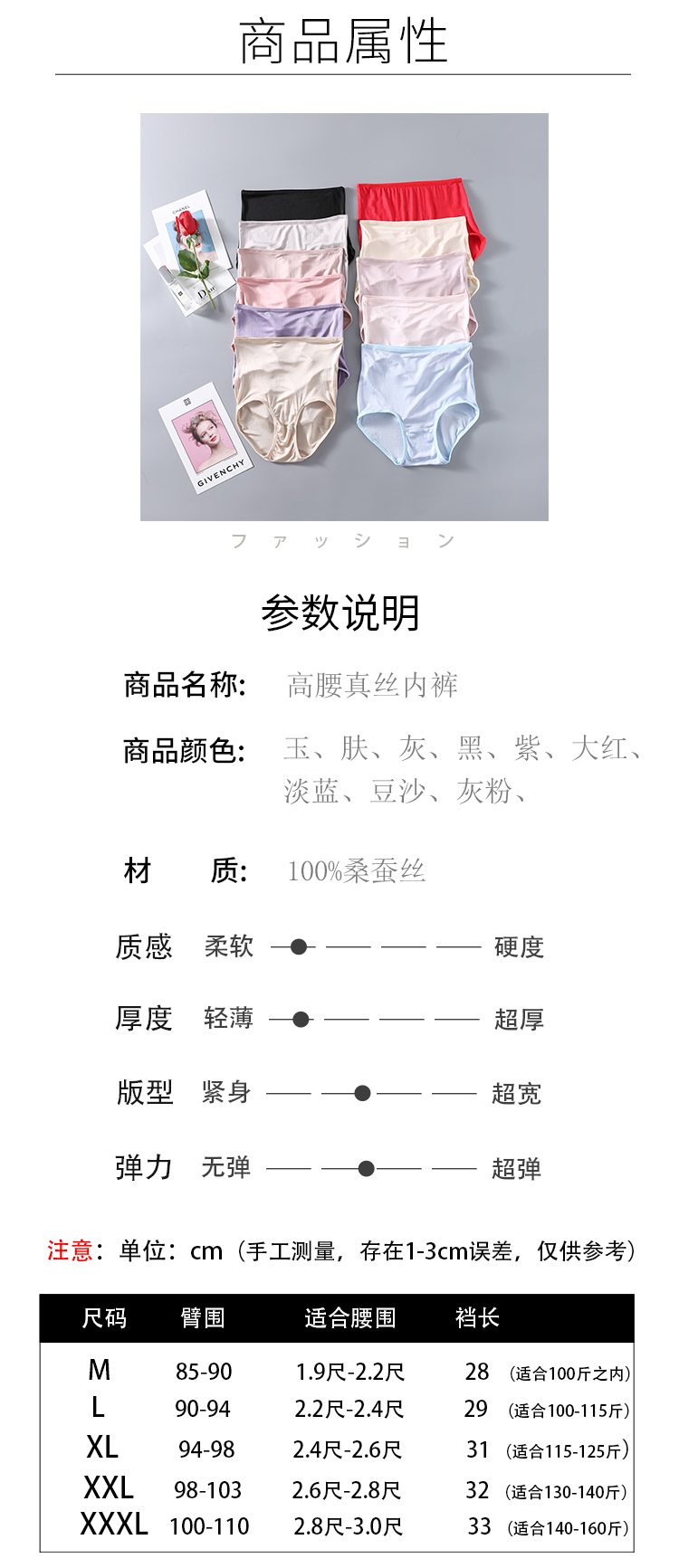 실크 하이 웨이스트 속옷 여성의 원활한 통기성 엉덩이 뽕나무 실크 반바지 니트 삼각형 얇은 플러스 사이즈 속옷 여름
