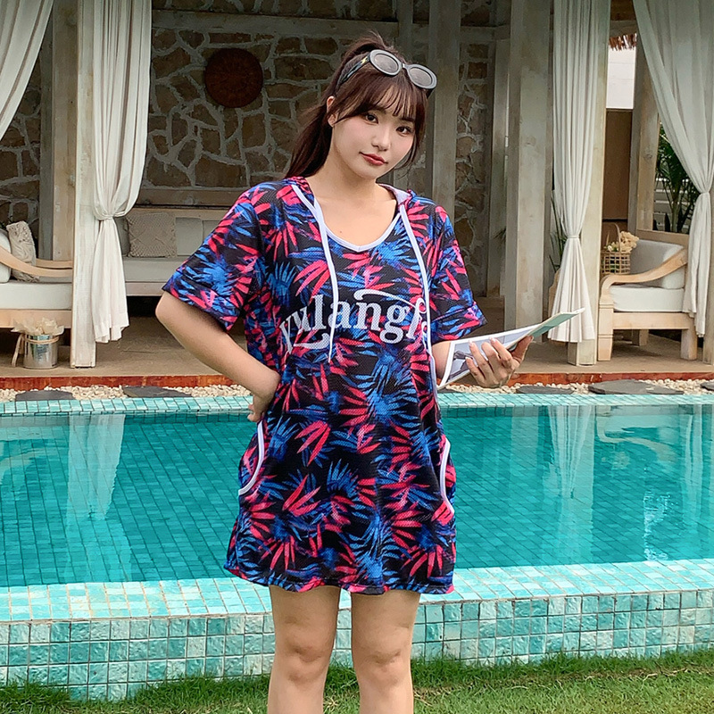 플러스 사이즈 수영복 여성 지방 mm330 kg 쓰리 피스 스포츠 배꼽 슬림 느슨한 섹시 보수적 인 온천 수영복 여성