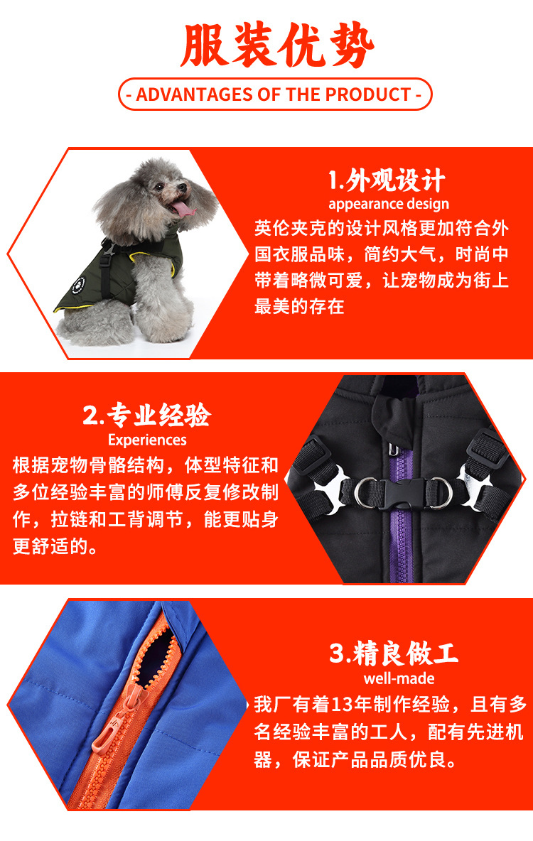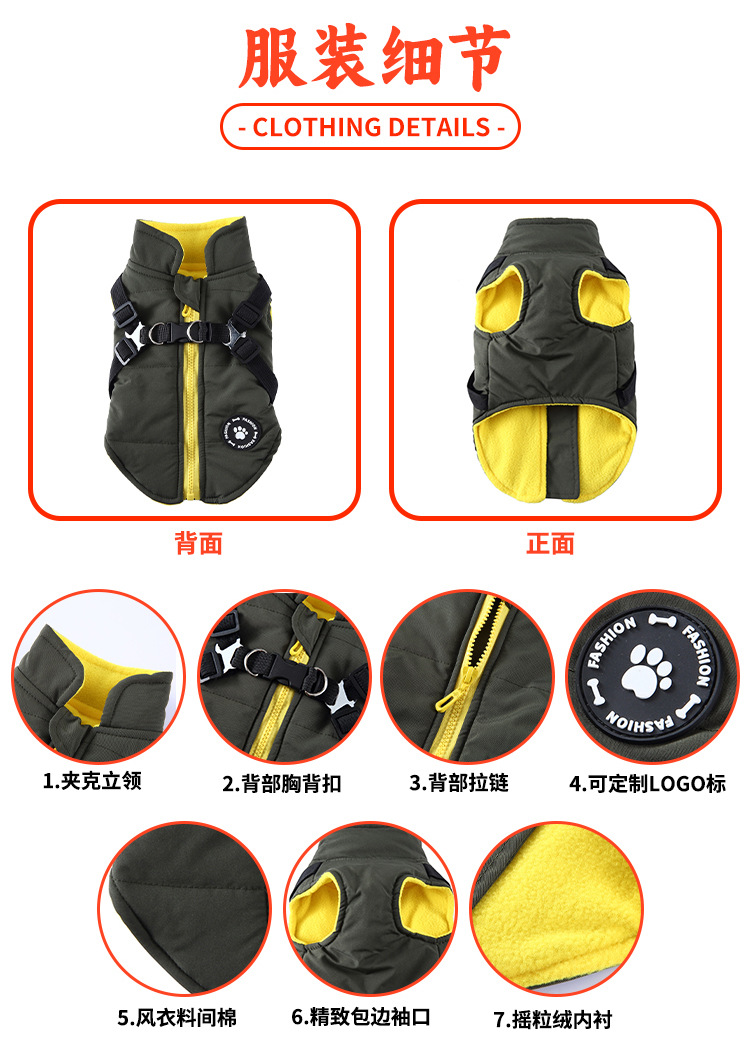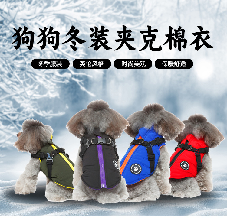 강아지 가을 겨울옷 애완동물 의류 해외직구 겨울 강아지 조끼 겨울 재킷 지퍼형 리드줄 연결 가능 의류