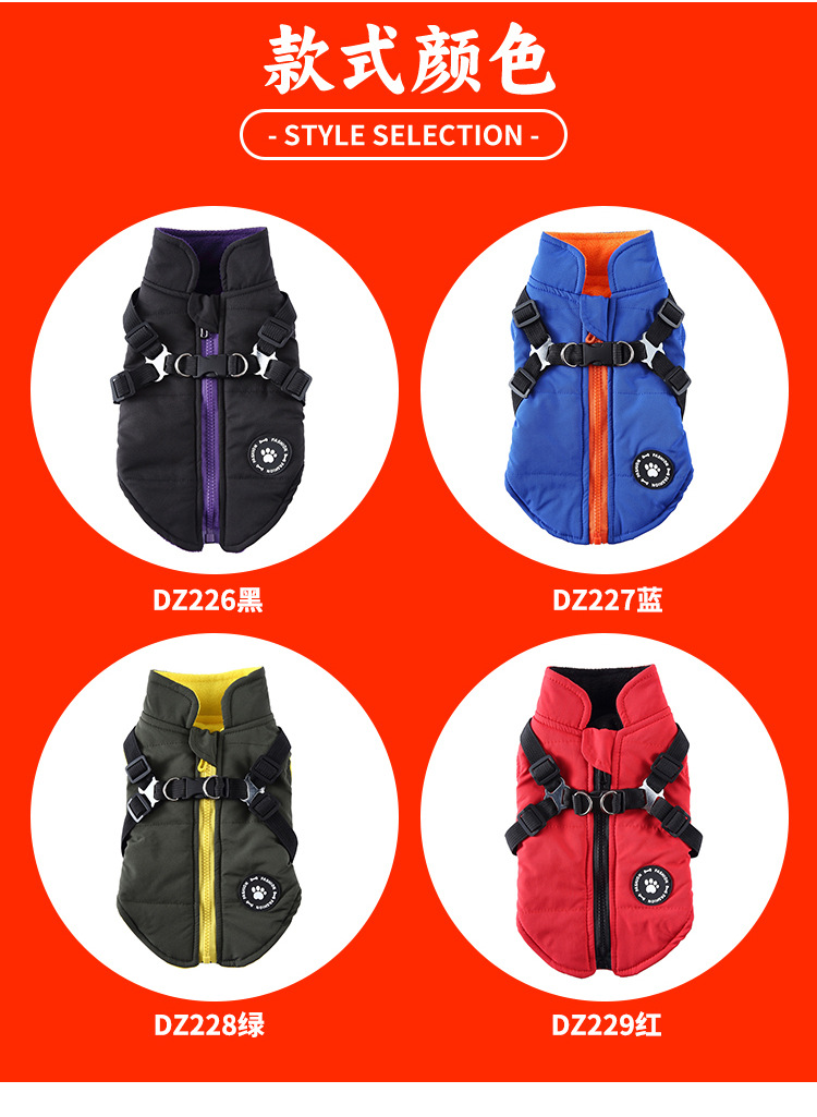 강아지 가을 겨울옷 애완동물 의류 해외직구 겨울 강아지 조끼 겨울 재킷 지퍼형 리드줄 연결 가능 의류스토어 가기