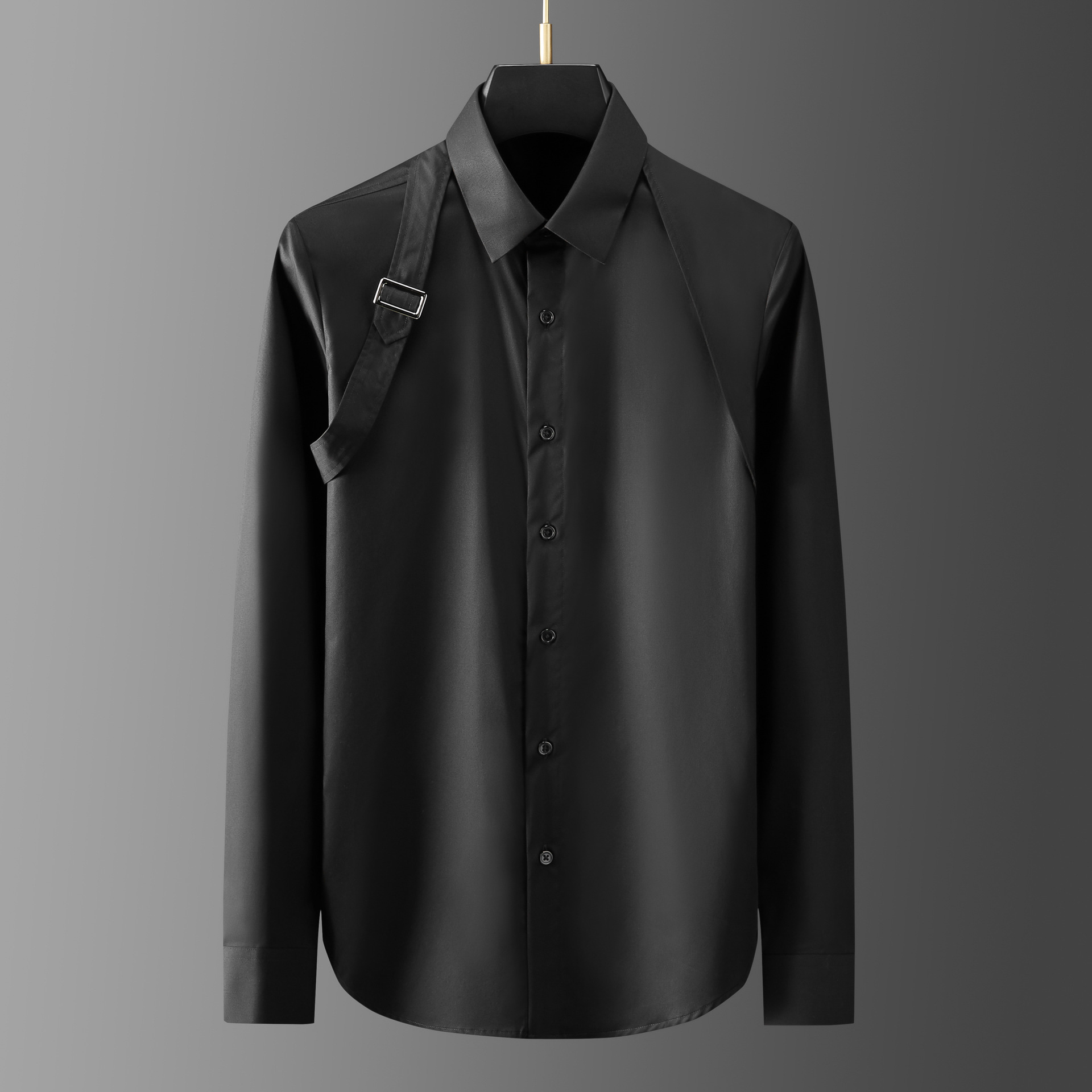 유럽과 미국 어깨 위의 금속 버클 리본 개성 디자인 남성용 긴 소매 나이트 클럽 셔츠 공장