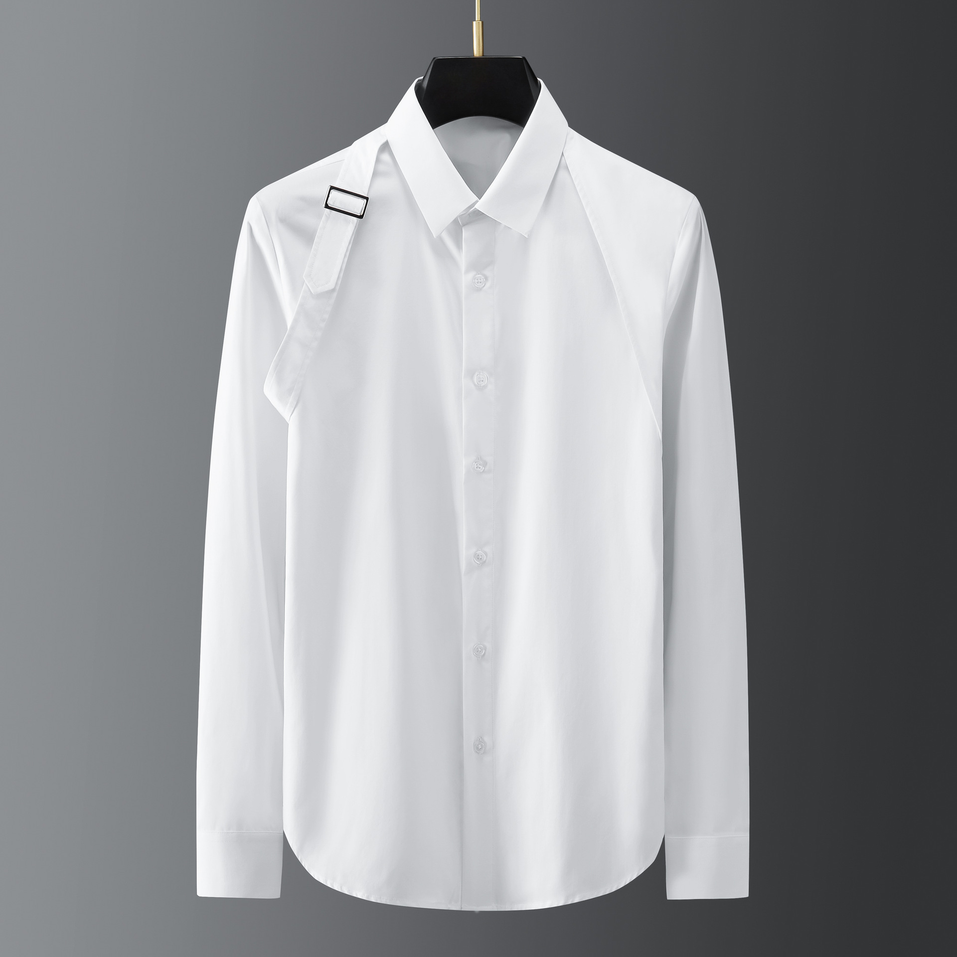 유럽과 미국 어깨 위의 금속 버클 리본 개성 디자인 남성용 긴 소매 나이트 클럽 셔츠 공장스토어 가기