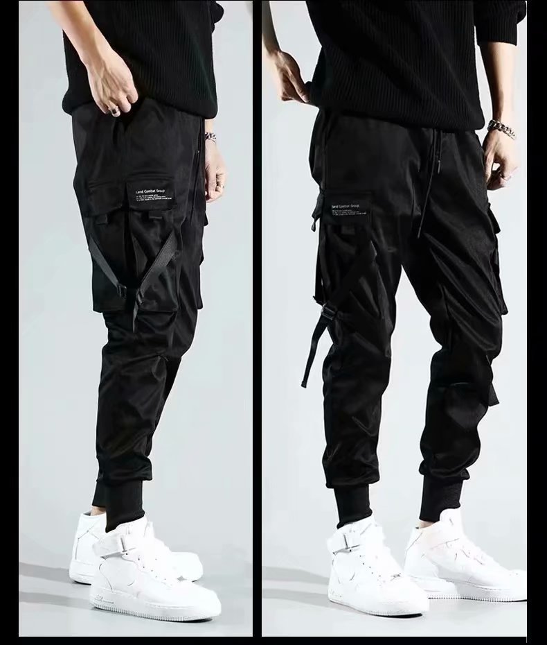 INS原创潮牌男式多袋工装裤春季青年束脚九分运动裤学生嘻哈裤男