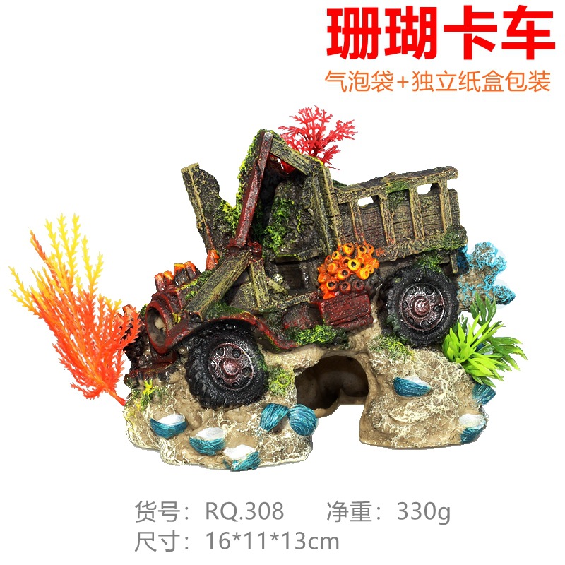 Ruiqi 수족관 새로운 창조적 인 어항 풍경 산호 기름 램프 진주 조개 트럭 난파 암초 물 잔디 장식품스토어 가기