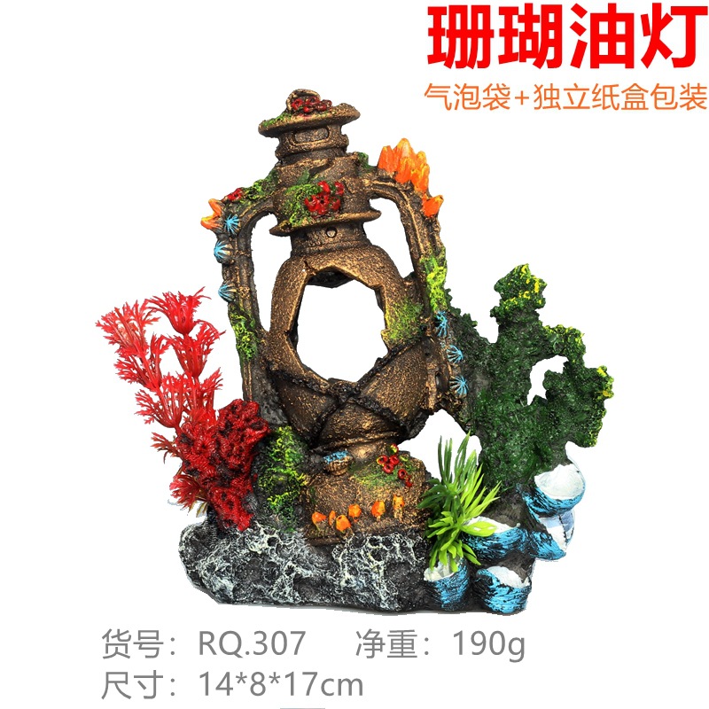 Ruiqi 수족관 새로운 창조적 인 어항 풍경 산호 기름 램프 진주 조개 트럭 난파 암초 물 잔디 장식품