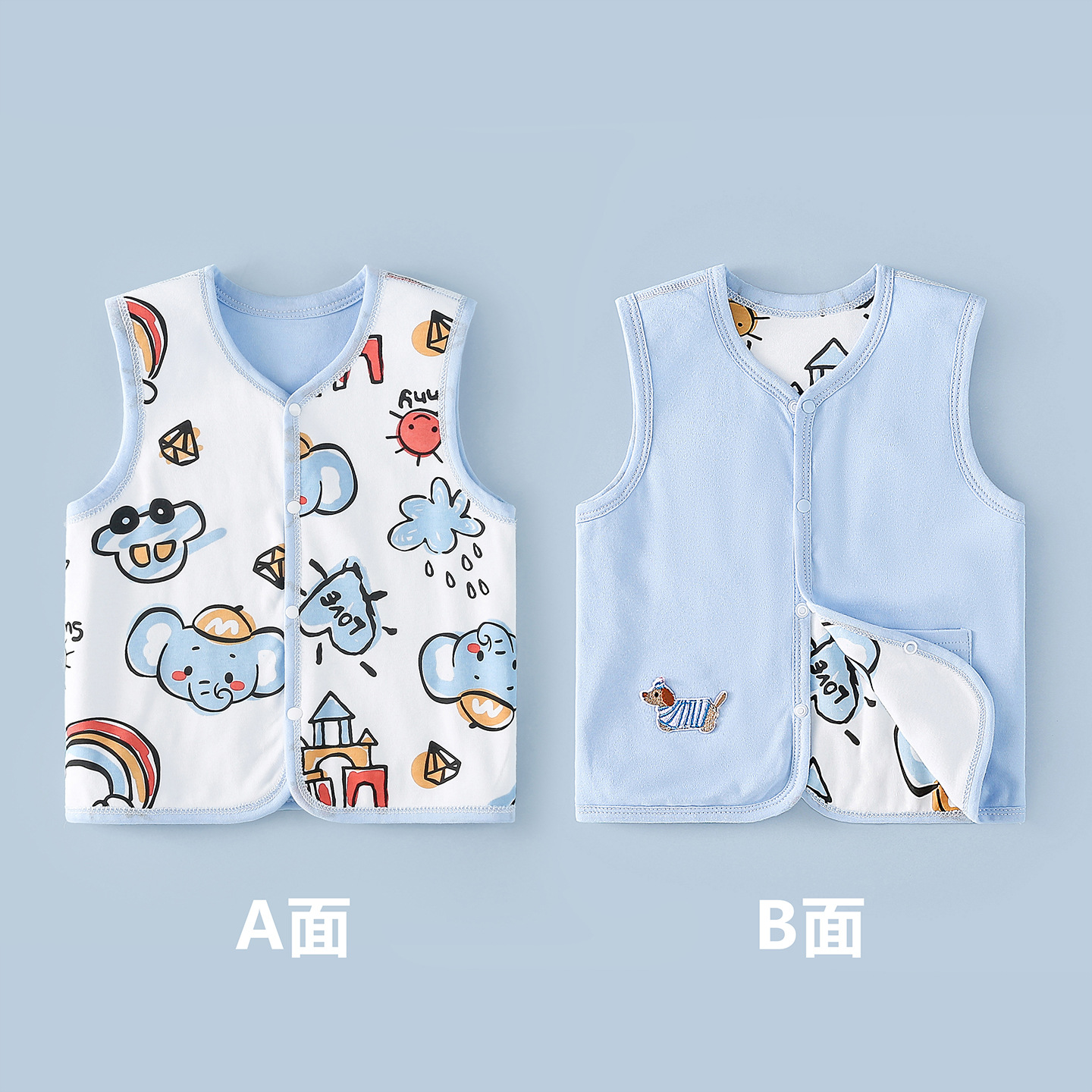 아기 조끼 봄과 가을 겉옷 아기 조끼 신생아 조랑말 클립 면 양면 옷 모든 매치 탑 만화스토어 가기