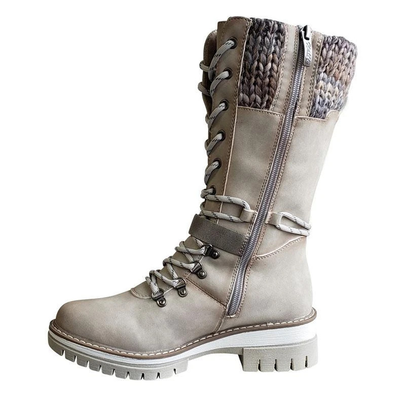 국경 간 대외 무역 2020 새로운 플러스 사이즈 여성 부츠 영국 벨트 버클 레이스 업 하이 부츠 낮은 굽 두꺼운 바닥 기사 부츠 43