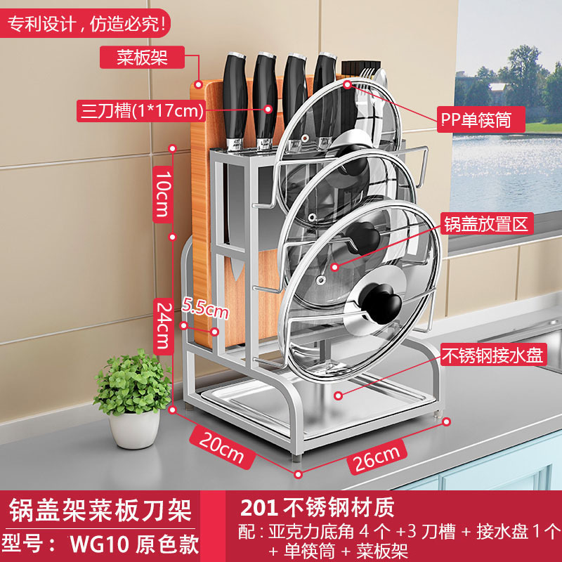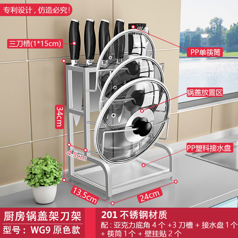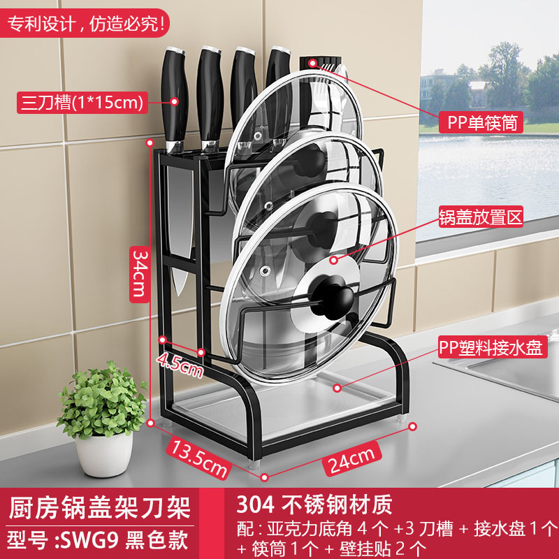 304 스테인리스 냄비뚜껑걸이, 벽걸이형 조리대 수납선반, 젓가락통, 일체형 칼꽂이, 칼, 조리기구스토어 가기