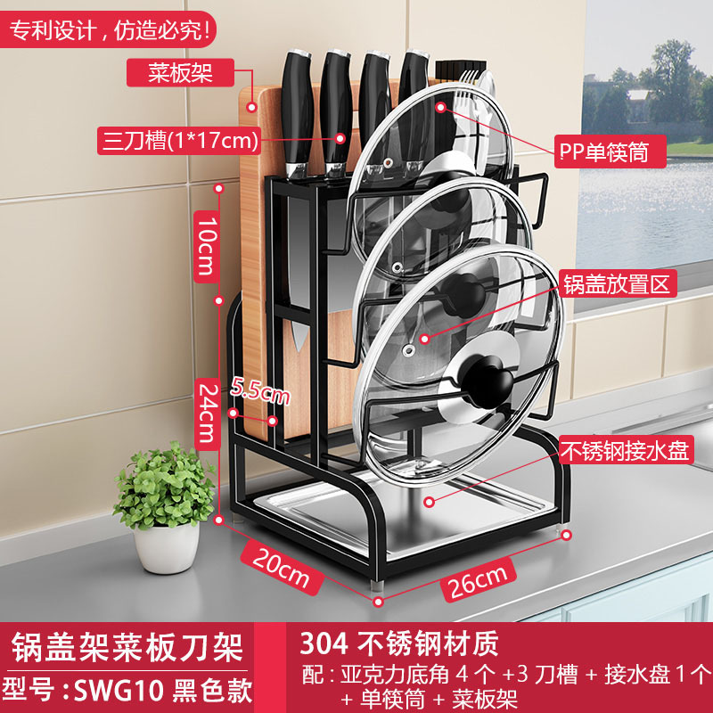 304 스테인리스 냄비뚜껑걸이, 벽걸이형 조리대 수납선반, 젓가락통, 일체형 칼꽂이, 칼, 조리기구