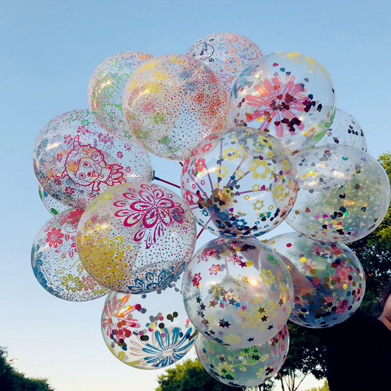 컬러 꽃 풍선 거품 풍선 어린이 장난감 스팽글 풍선 바닥 푸시 스윕 코드 분말 흡입 배수 작은 선물 무료 배송