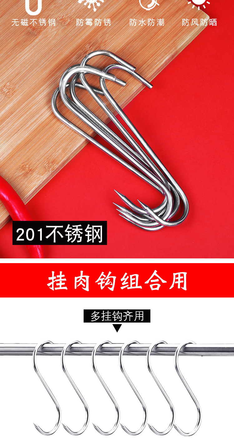 교수형 고기 후크 베이컨 후크 스테인레스 스틸 S 후크 로스트 오리 후크 매달려 소시지 홈 두꺼운 교수형 물고기 S 자형 후크 제조 업체스토어 가기