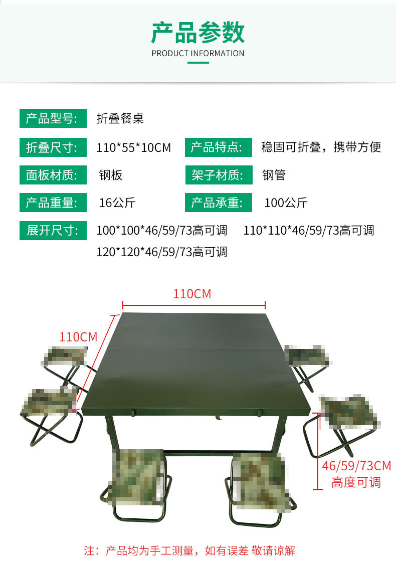군용 녹색 야외 접이식 테이블 훈련 회의 테이블 캠핑 휴대용 접이식 식탁 지휘 접이식 테이블과 의자