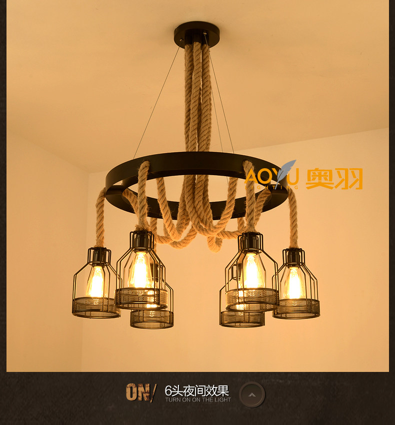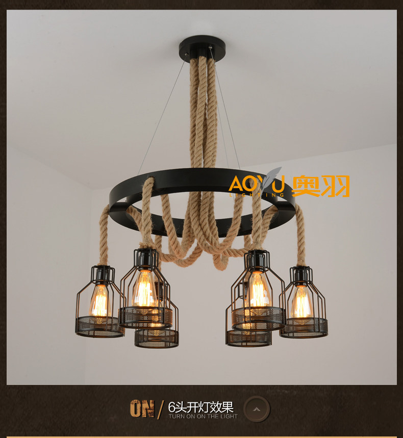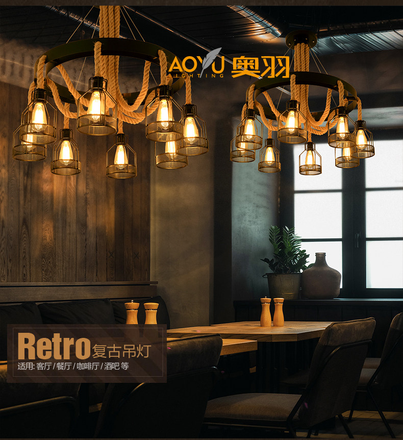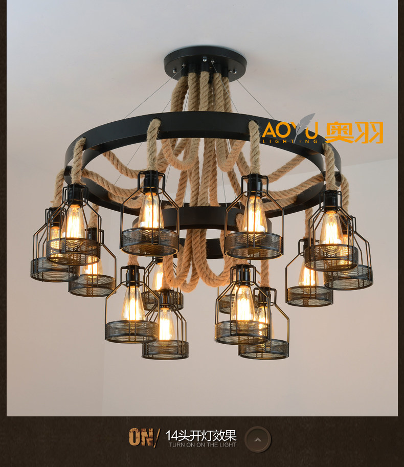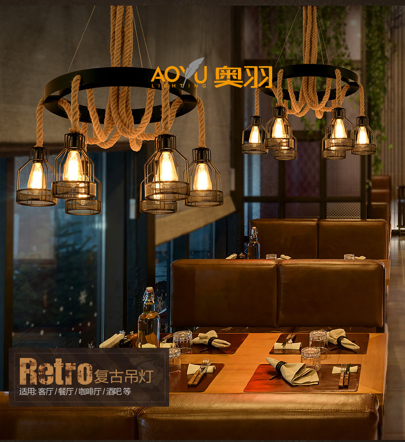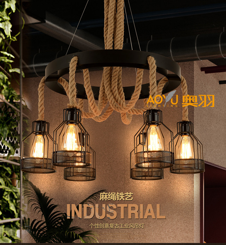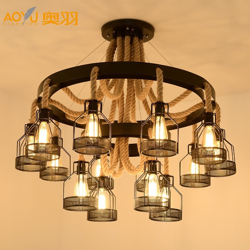 산업 스타일 복고풍 대마 로프 샹들리에 미국 컨트리 농가 냄비 레스토랑 바베큐 레스토랑 부스 창조적 인 개성 철