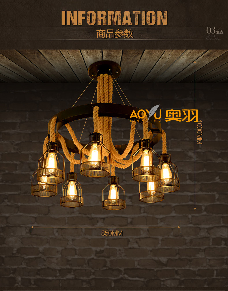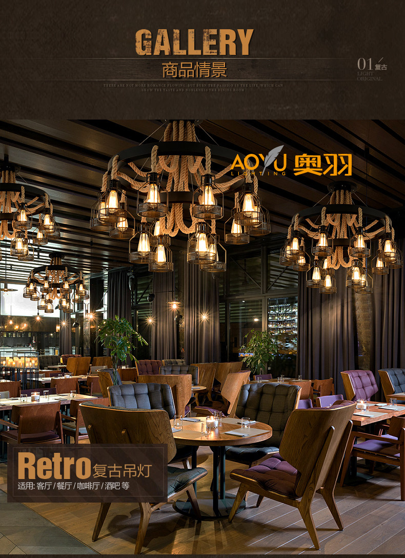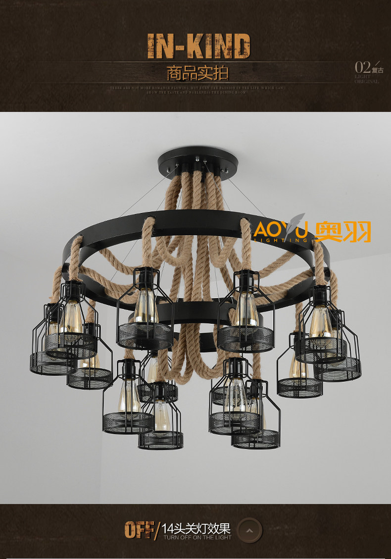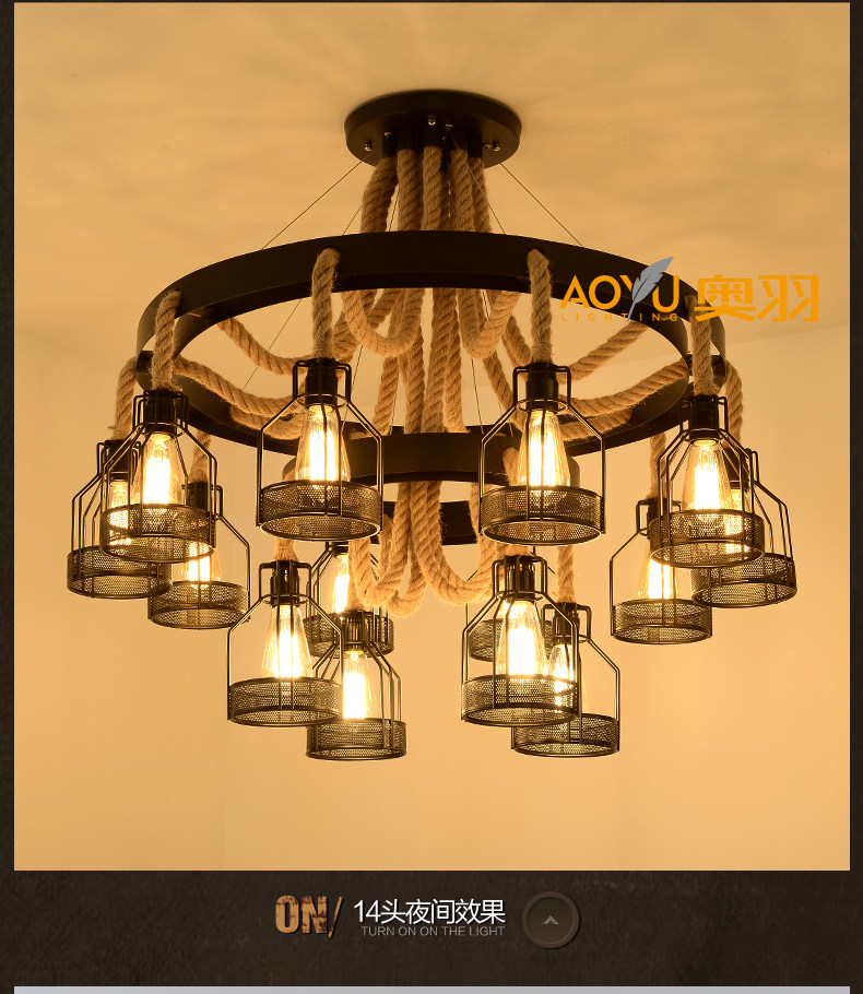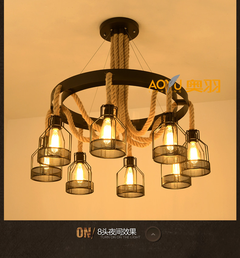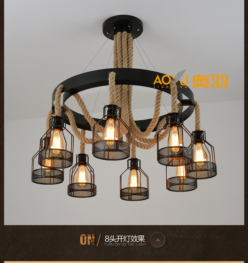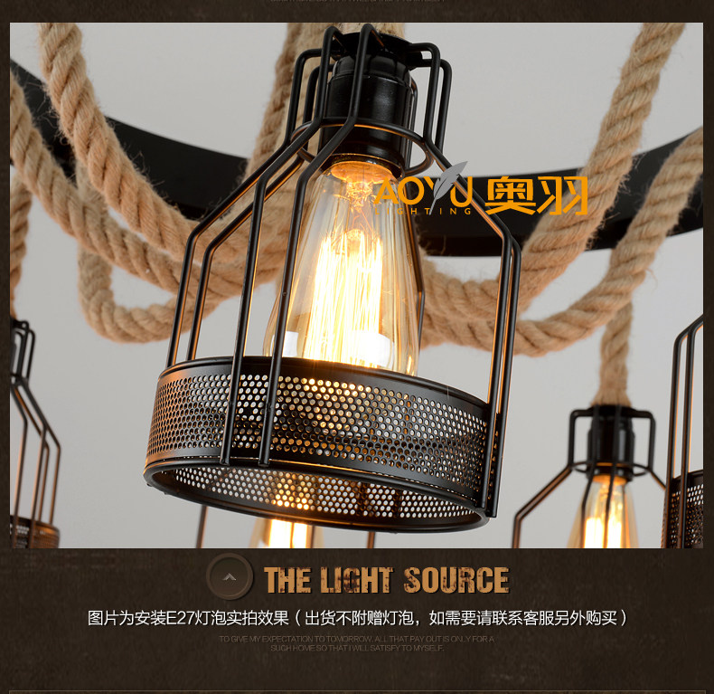 산업 스타일 복고풍 대마 로프 샹들리에 미국 컨트리 농가 냄비 레스토랑 바베큐 레스토랑 부스 창조적 인 개성 철