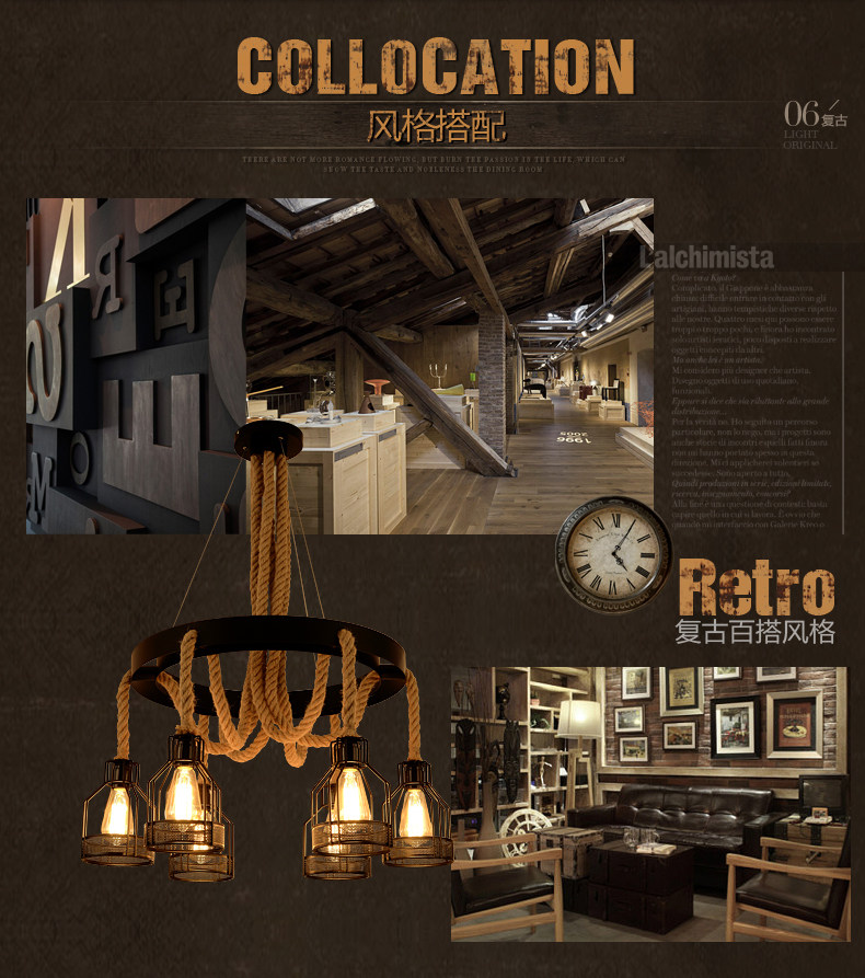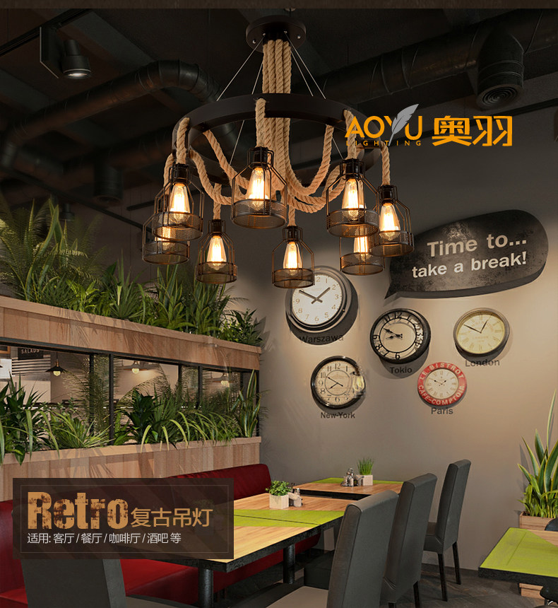 산업 스타일 복고풍 대마 로프 샹들리에 미국 컨트리 농가 냄비 레스토랑 바베큐 레스토랑 부스 창조적 인 개성 철스토어 가기