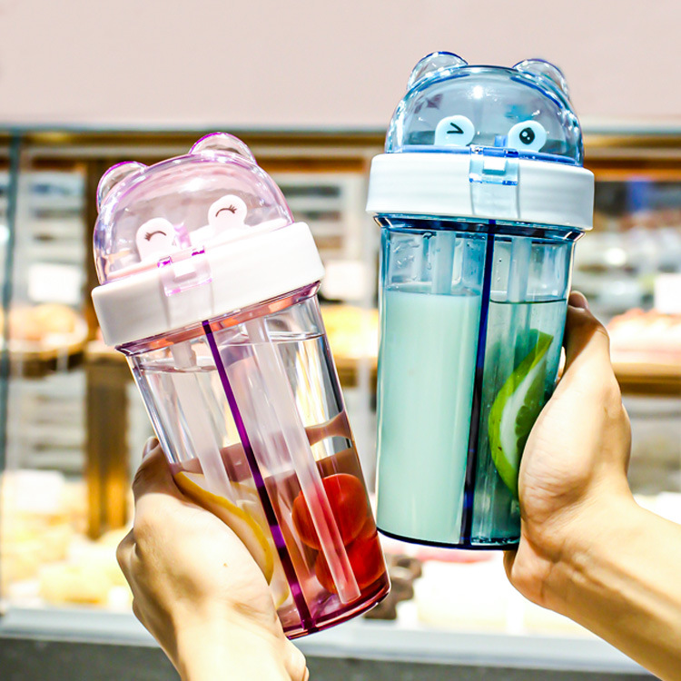 더블 드링크 컵 크리에이티브 플라스틱 시피 컵 in 학생 컵 커플 더블 시피 컵 선물 컵 도매스토어 가기