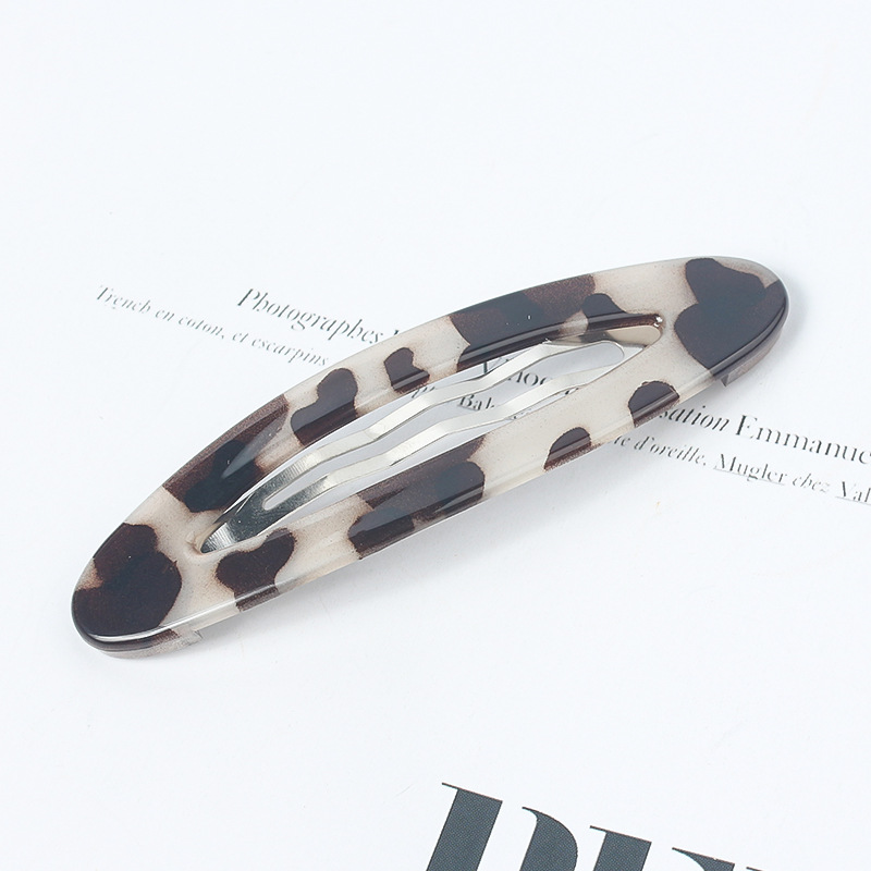 • 9cm 타원형 BB클립-GD 화이트 레오파드 포인트