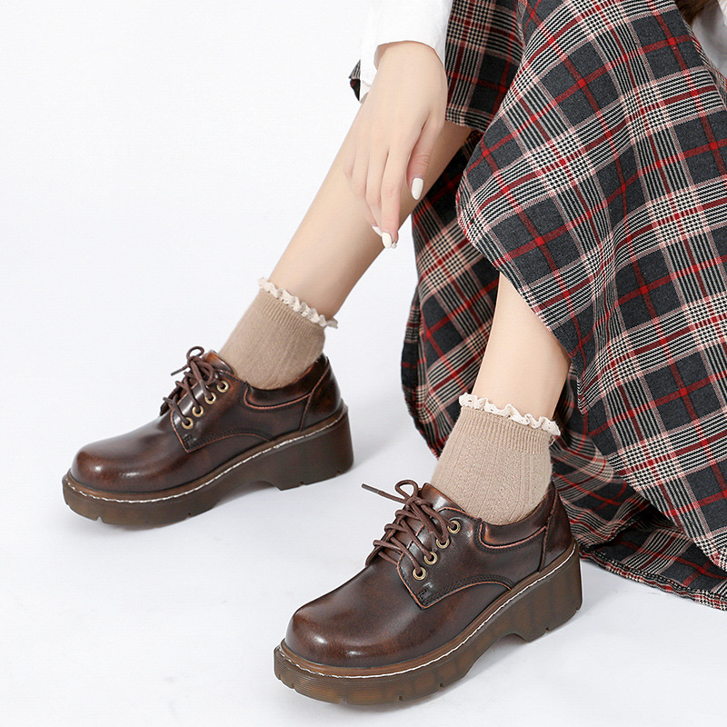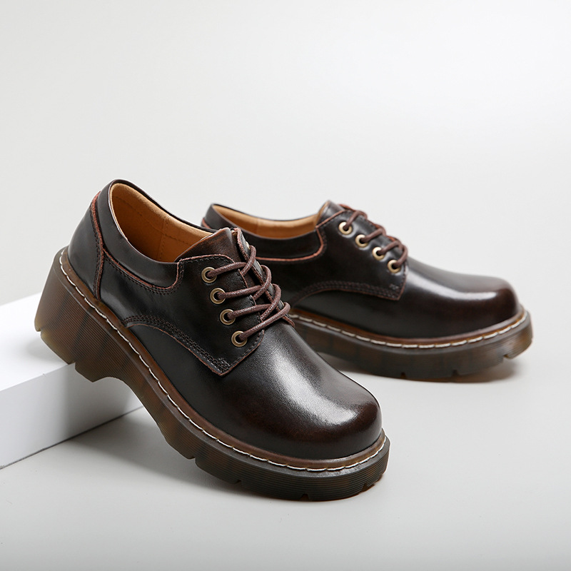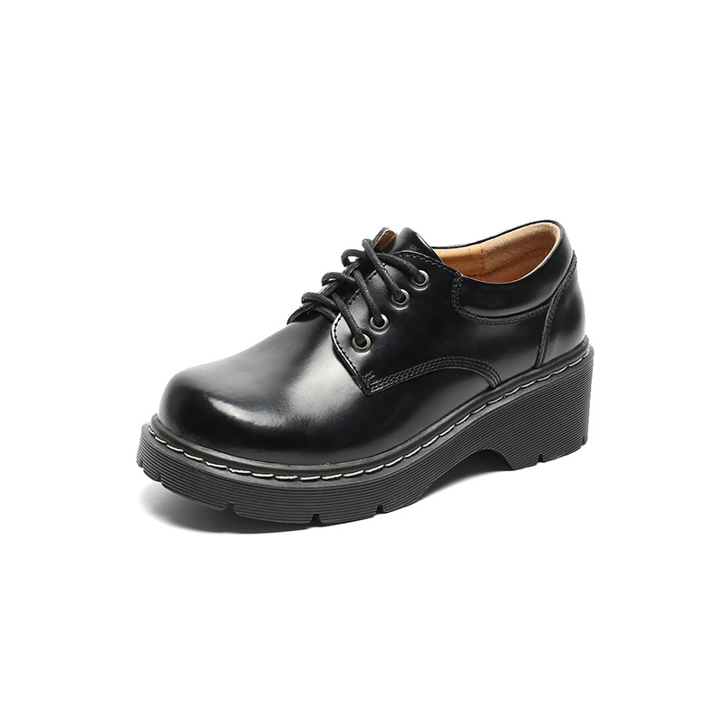아메리칸 풋 파워 2021 새로운 학술 스타일 두꺼운 바닥 로퍼 여름 얇은 라운드 발가락 증가 레이스 업 여성용 작은 가죽 신발스토어 가기