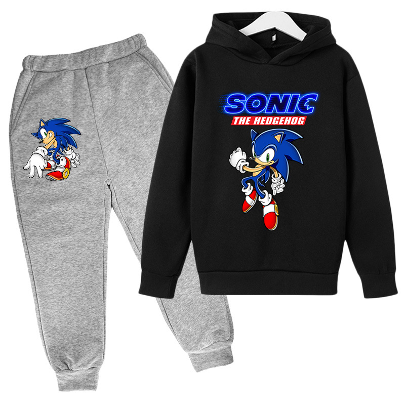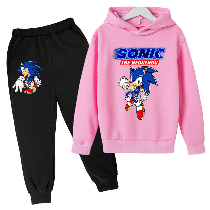 소년 소녀 하라주쿠 스타일 거리 느슨한 풀오버 어린이 2 피스 소닉 만화 인쇄 기모 스웨터스토어 가기