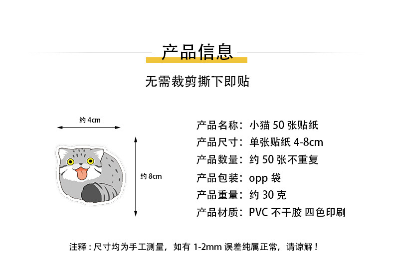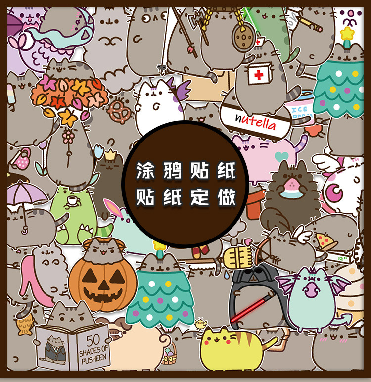 50 뚱뚱한 고양이 스티커 귀여운 휴대 전화 스쿠터 수하물 컴퓨터 낙서 창조적 인 스티커 도매스토어 가기