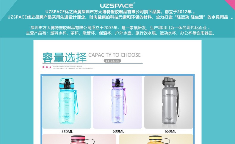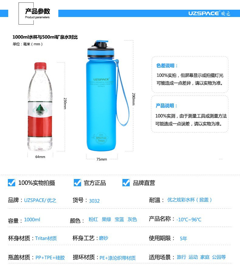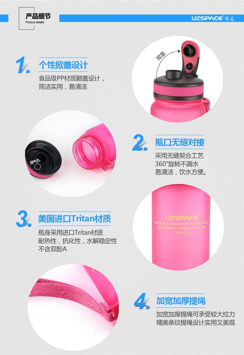 맞춤형 UZSPACE 대용량 야외 사이클링 및 등산 피트니스 워터 컵 여름 대용량 스포츠 물병스토어 가기