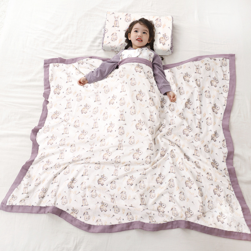 • S-078 거즈 6 층의 어린이 이불 120*150 (대나무 면화)-타로 토끼