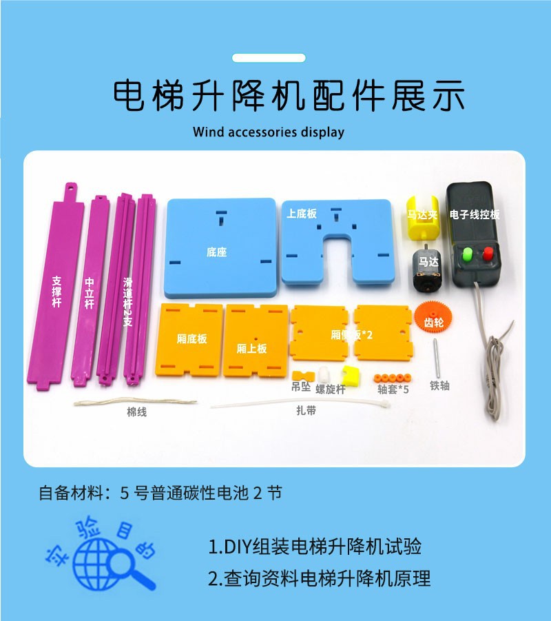 과학 실험 엘리베이터 초등 및 중등 학교 학생 DIY 수제 과학 기술 소규모 생산 STEM 교육 보조 세트