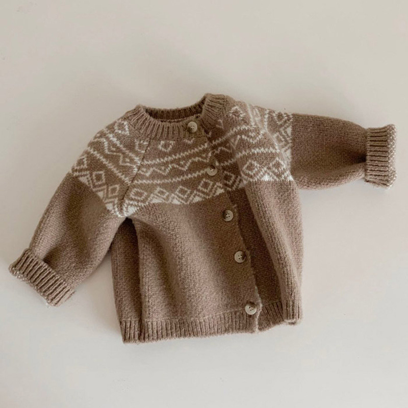 2022 한국 스타일 아기와 유아의 스웨터 코트 봄과 가을 모리 스타일 복고풍 패턴 라운드 넥 캐주얼 니트 스웨터스토어 가기