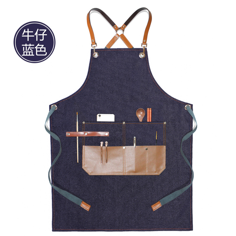 아마존 데님 앞치마 한국 스타일 패션 이발사 미술 학생 커피숍 작업복 두꺼운 캔버스 앞치마 도매스토어 가기