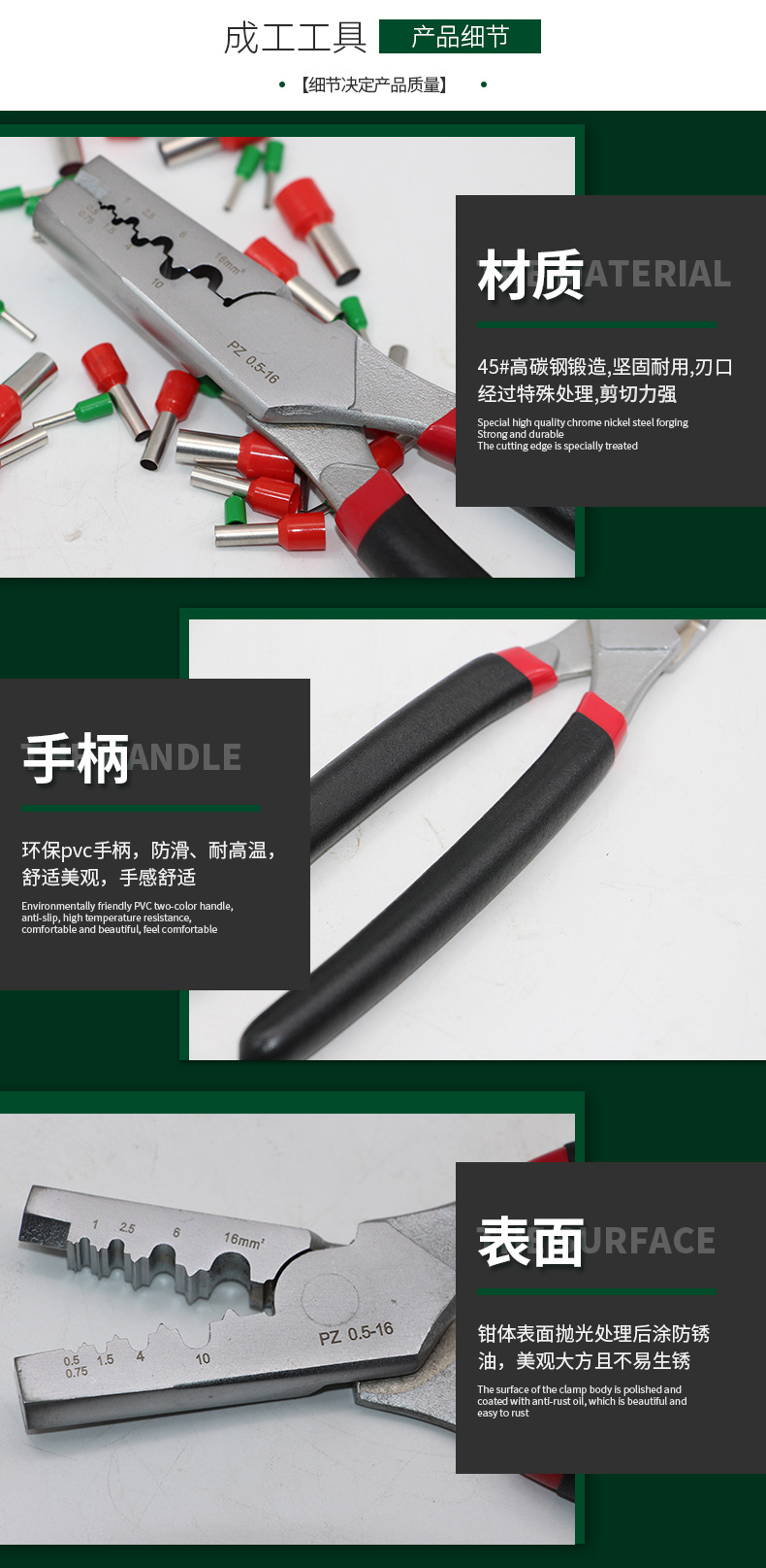 PZ0.5mm ²-16mm ² 독일 8.5 인치 와이어 압착 플라이어 냉간 압착 터미널 플라이어 와이어 압착 터미널 플라이어