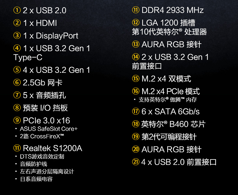 内存描述支持DDR4 2933/2800/2666/2400/2133MHz内存