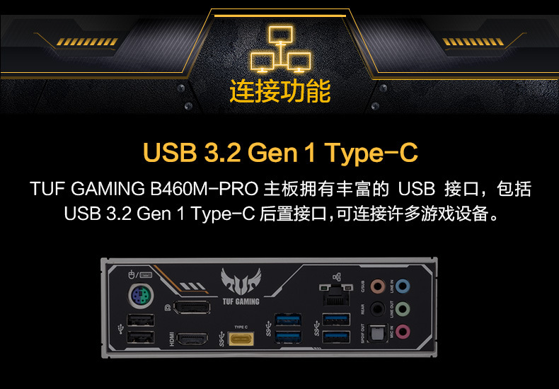 USB接口5×USB3.2 Gen1接口(1×Type-C,4×Type-A),2×USB2.0接口