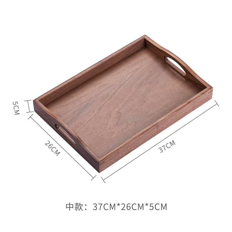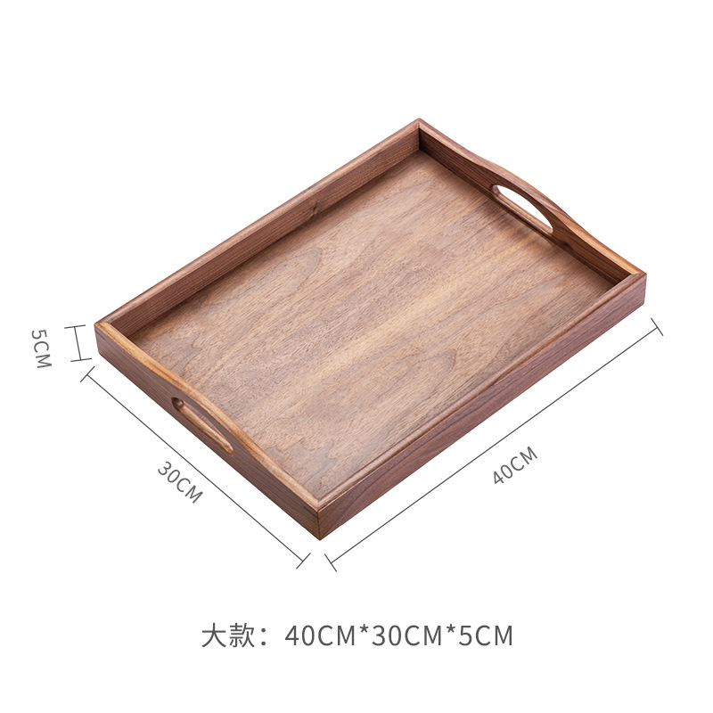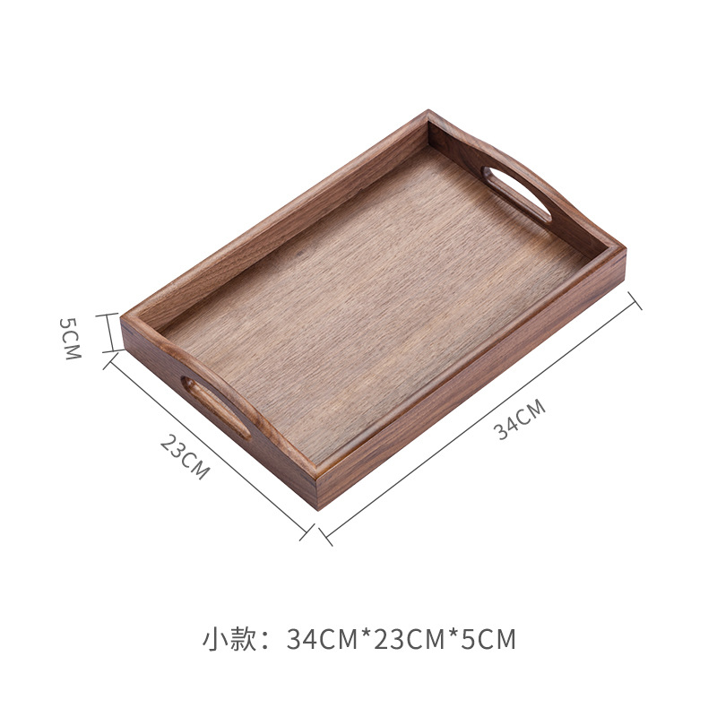 북유럽 스타일 블랙 호두 나무 트레이 직사각형 단단한 나무 트레이 손잡이 호텔 레스토랑 접시 포함 찻잔 트레이