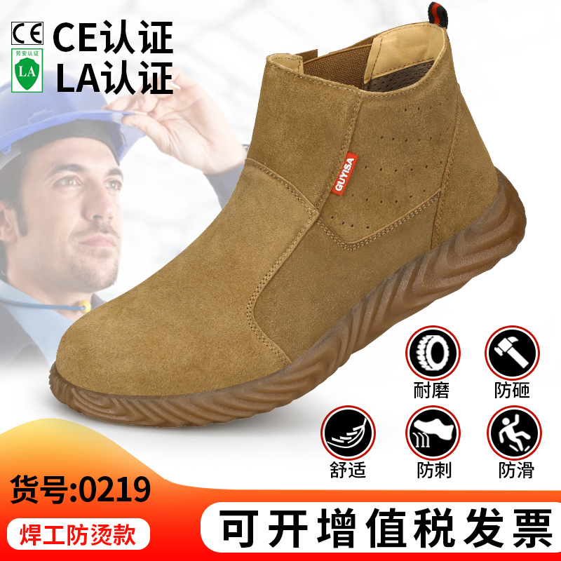 용접공 신발, 남성용 방화, 충격 방지, 펑크 방지, 스웨이드 가죽 노동 보호 신발, 스틸 토 슬립온 건설 현장 작업화, 사계절스토어 가기