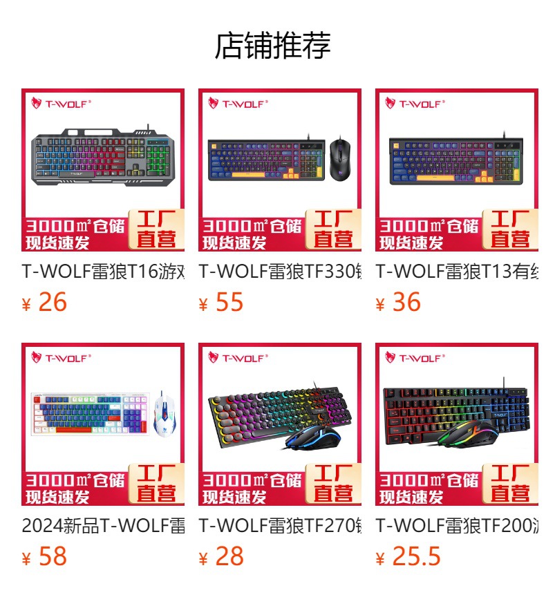 T-WOLF Thunder Wolf TF600 키보드 및 마우스 세트 유선 USB 발광 키보드 철판 강판 T16 키보드스토어 가기