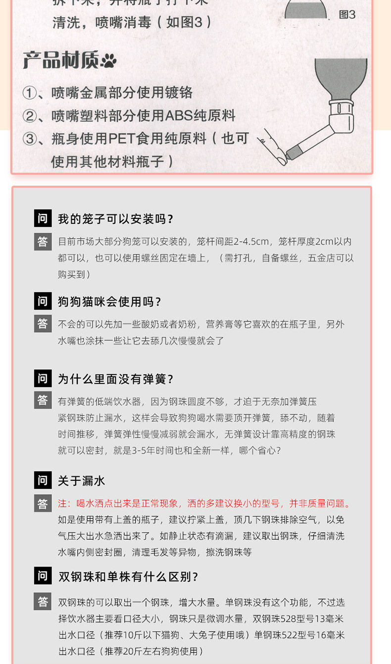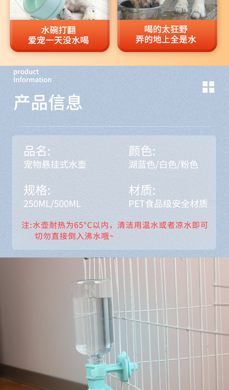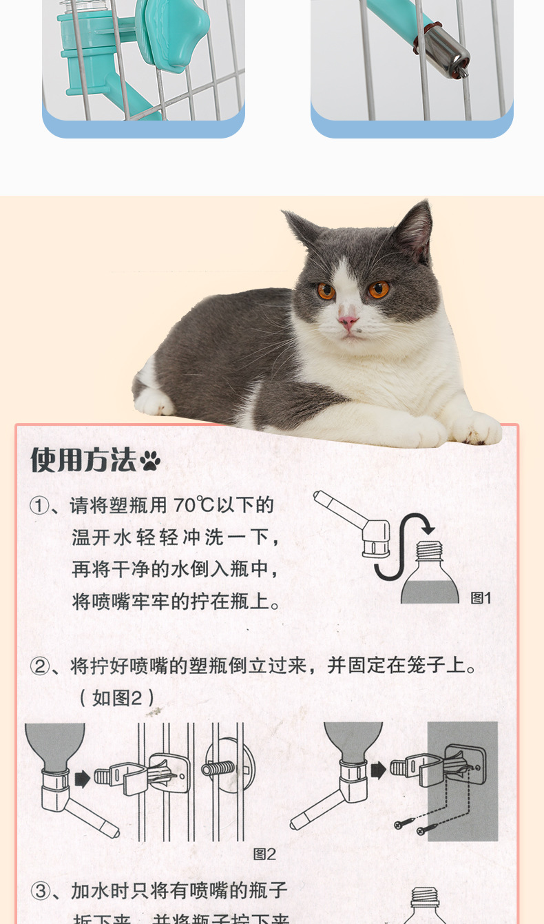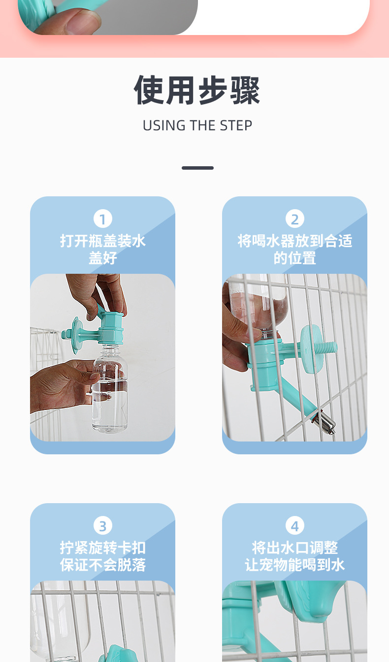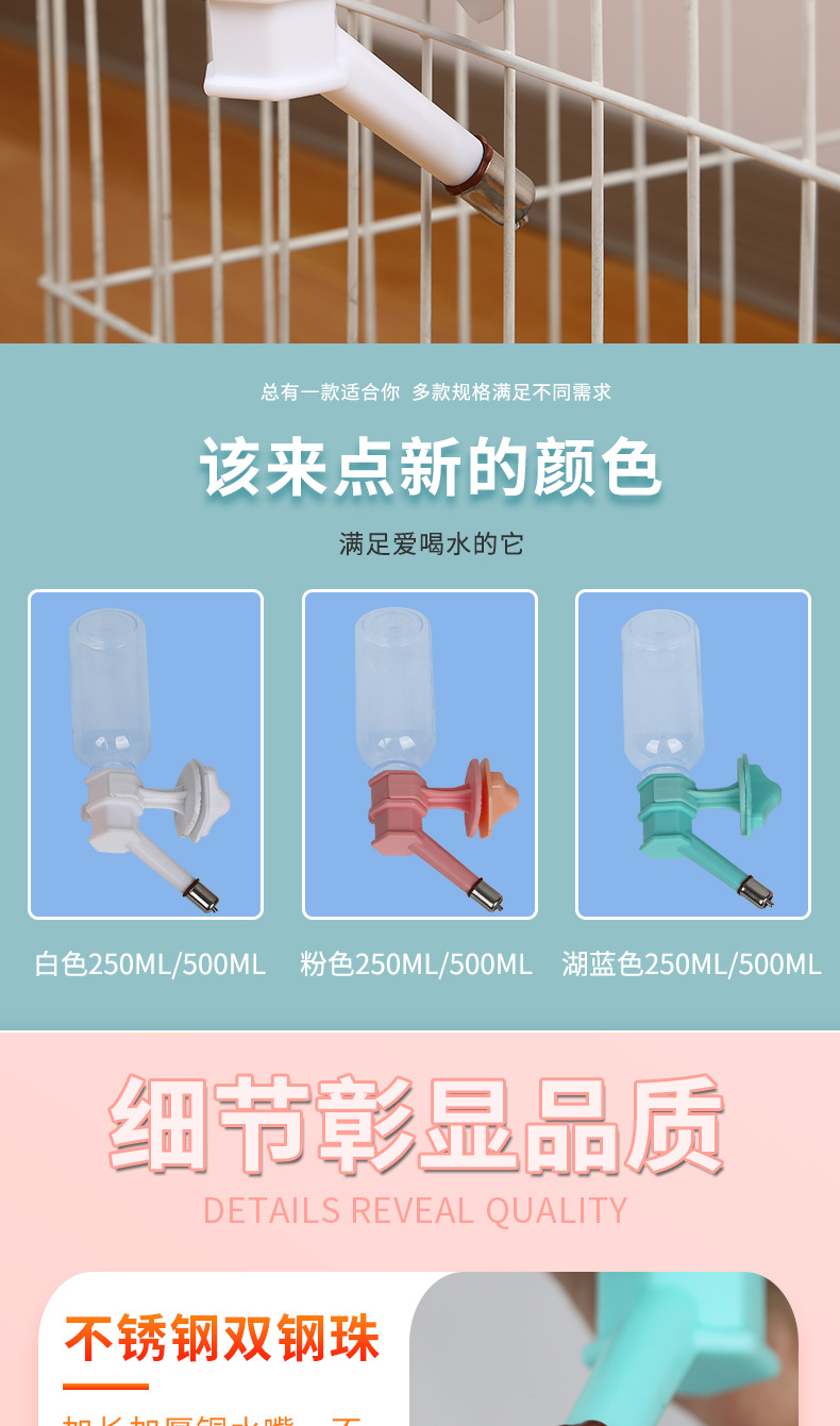 애완동물용 걸이형 자동 급수기 소형견용 바늘형 급수기 케이지 걸이형 자동 급수기