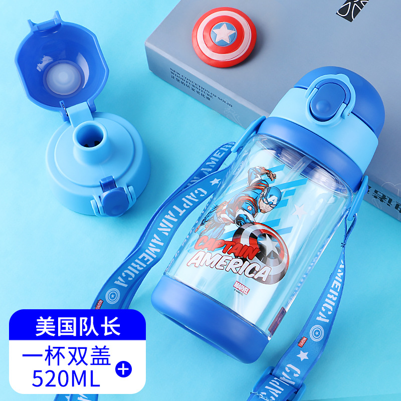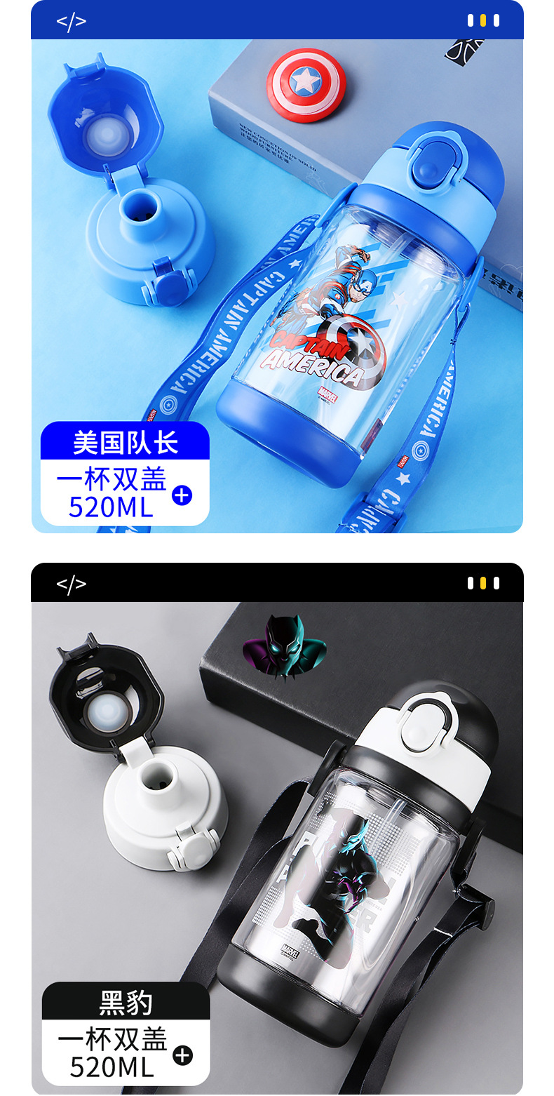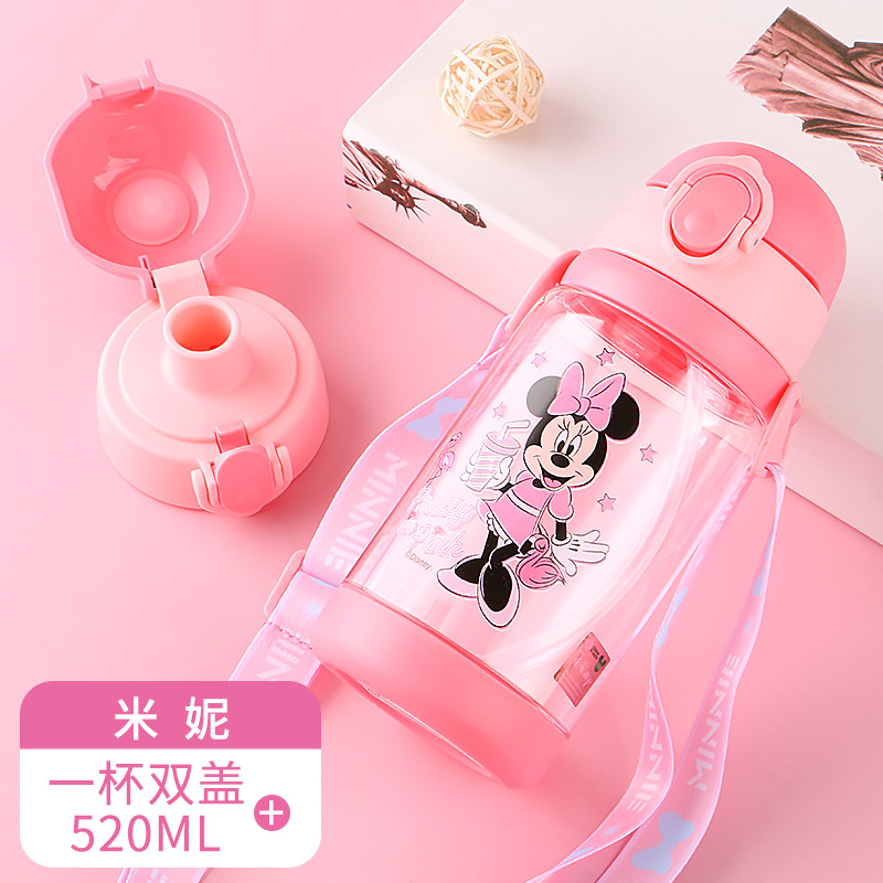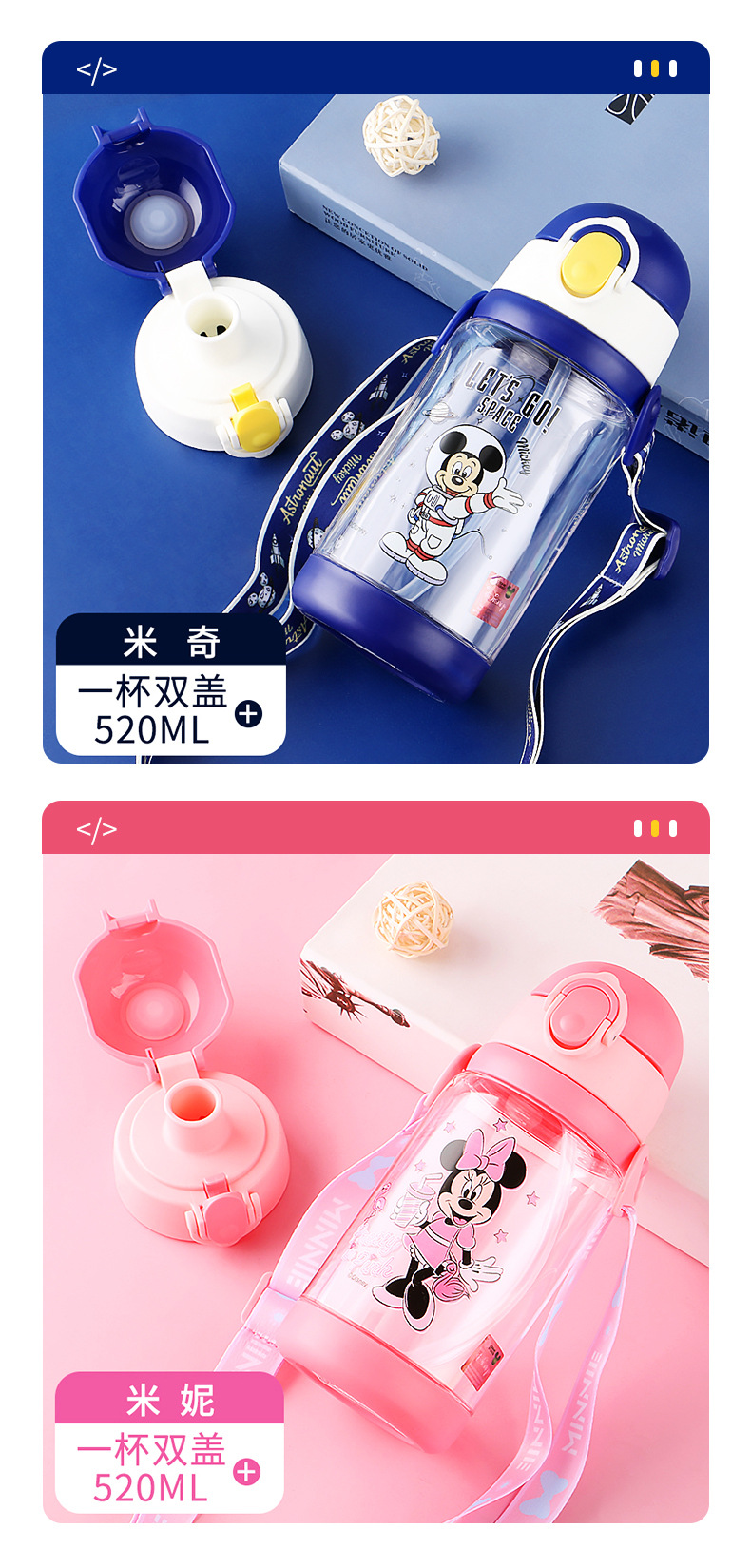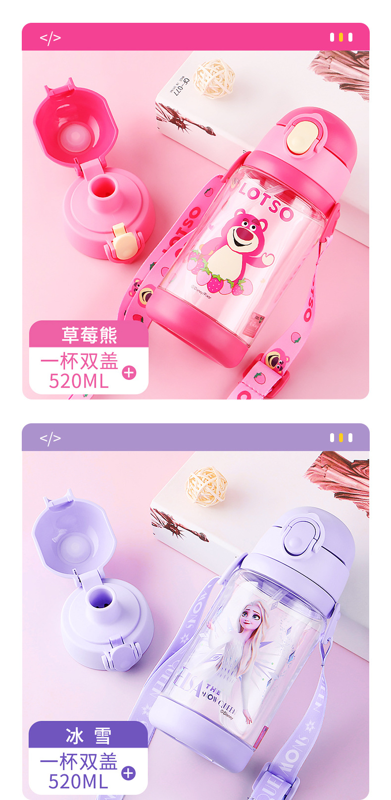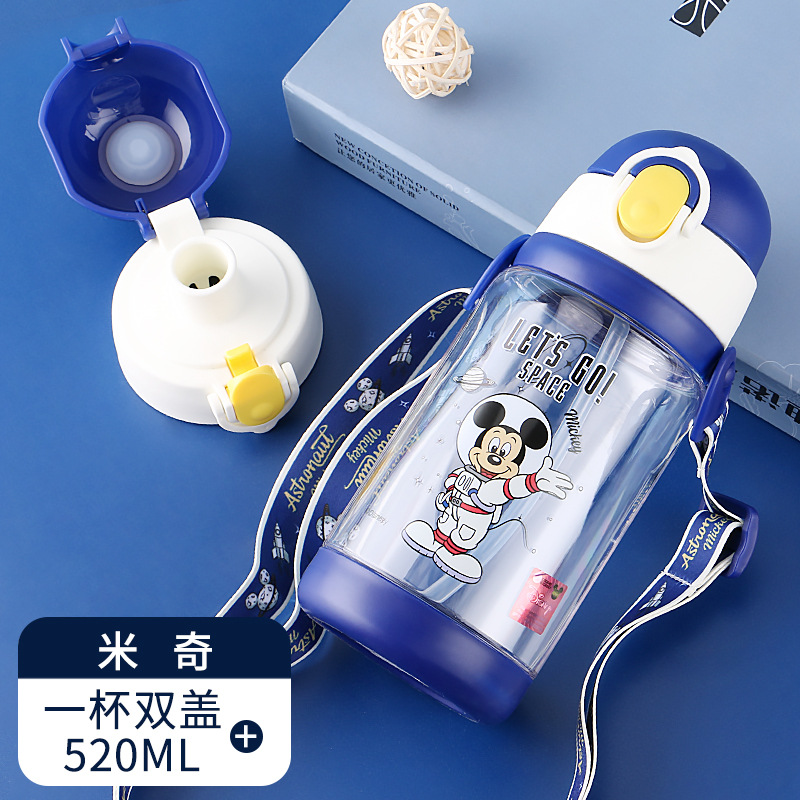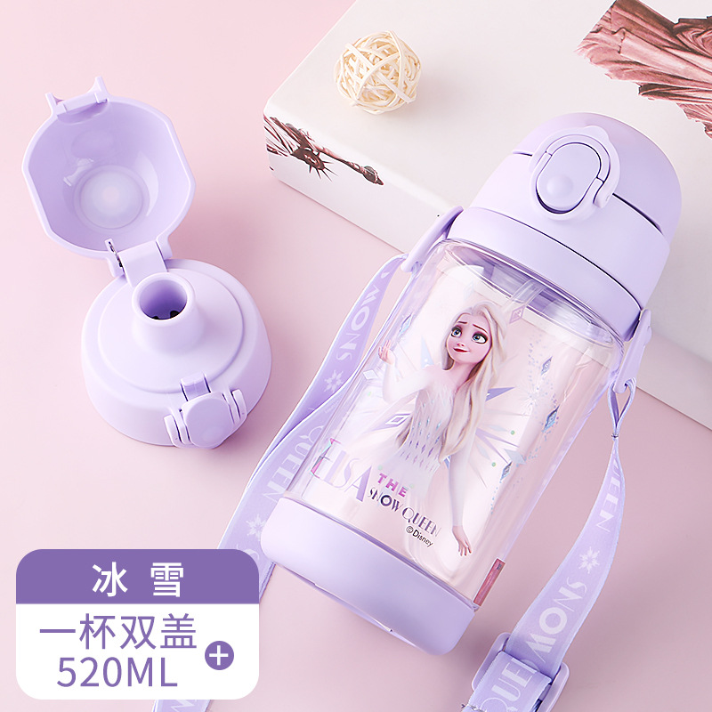 디즈니 어린이 물컵 빨대 플라스틱 컵 이중 목적 초등학생 휴대용 낙하 방지 컵 소년 소녀 아기 물병
