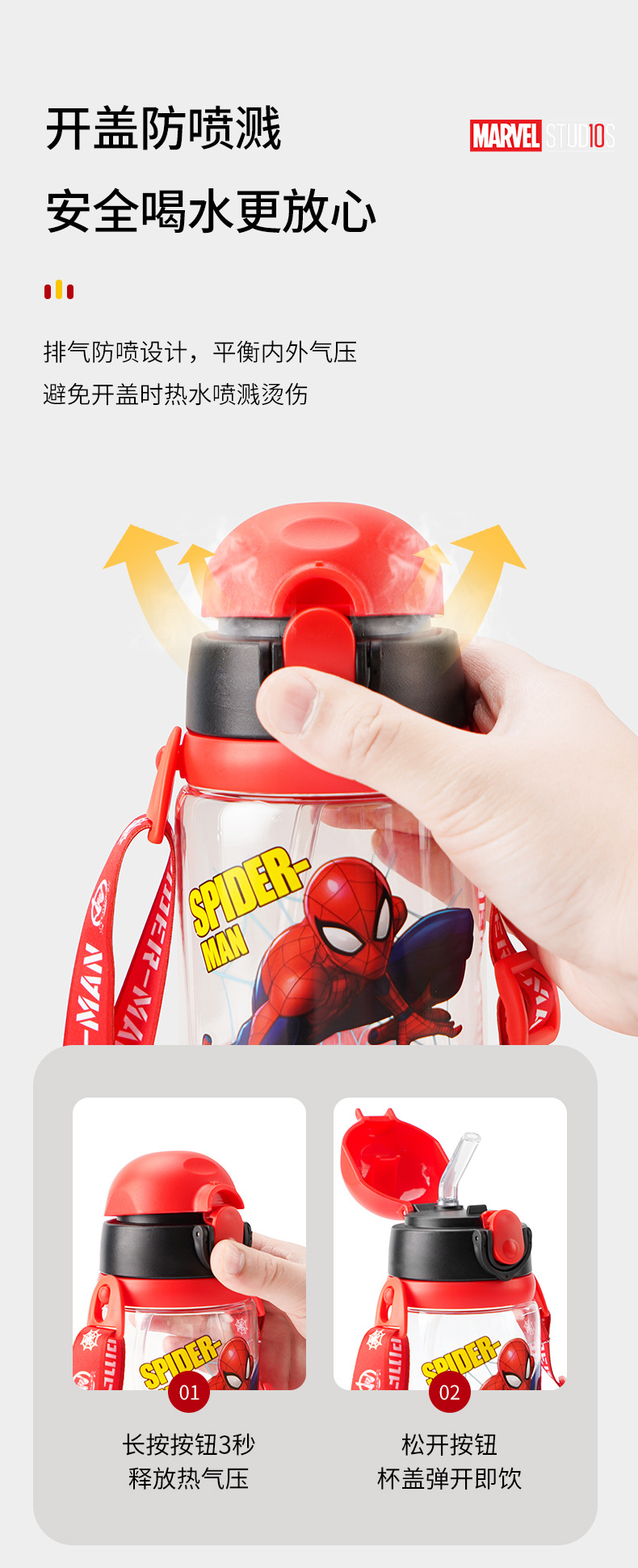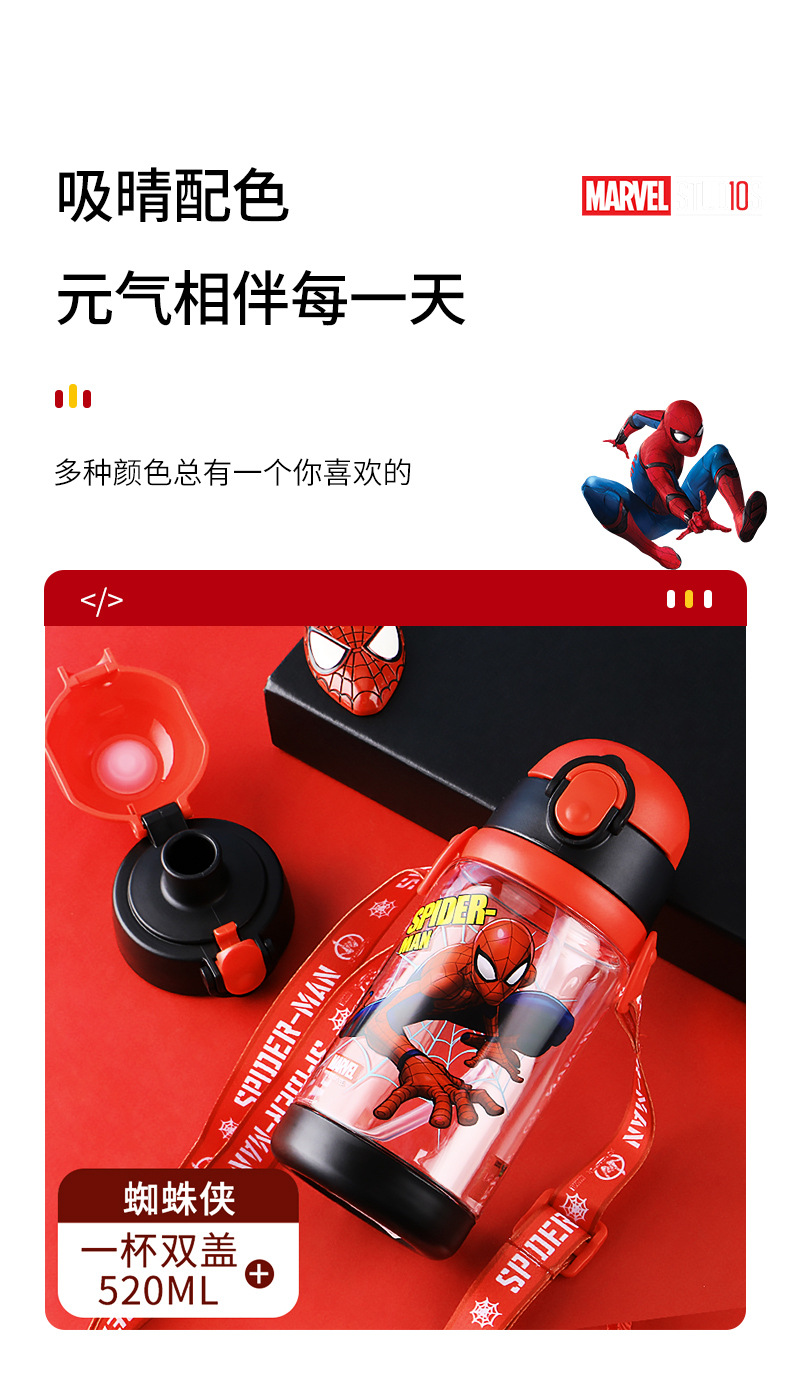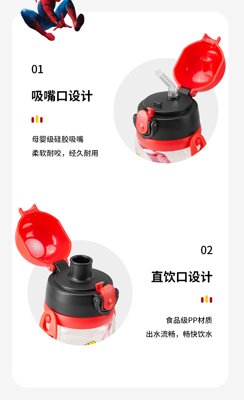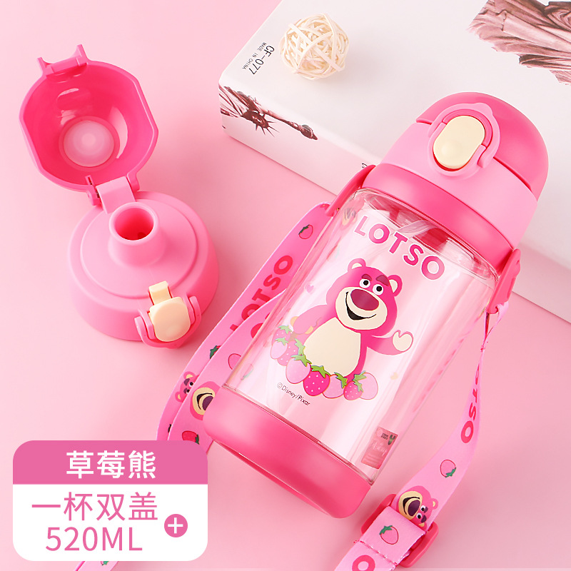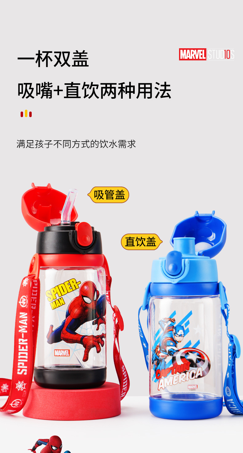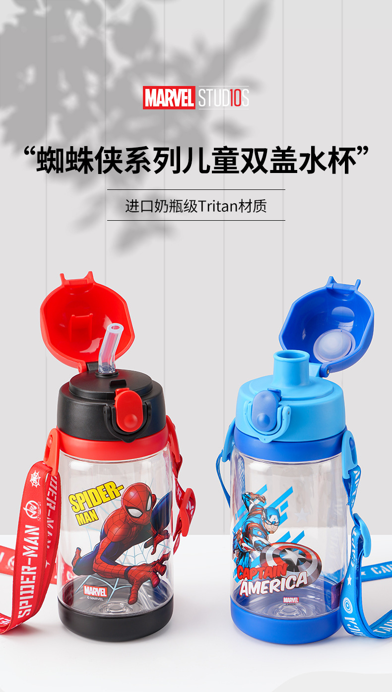 디즈니 어린이 물컵 빨대 플라스틱 컵 이중 목적 초등학생 휴대용 낙하 방지 컵 소년 소녀 아기 물병