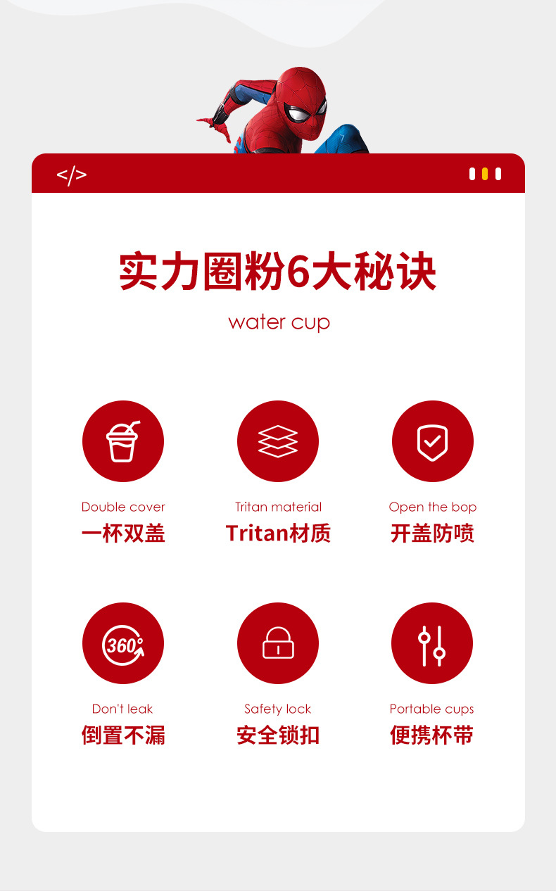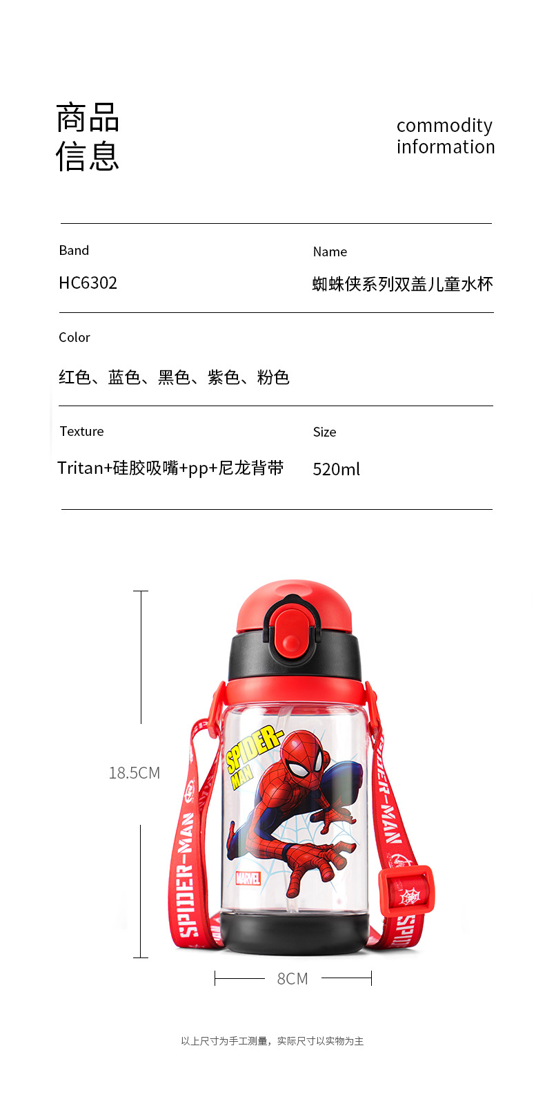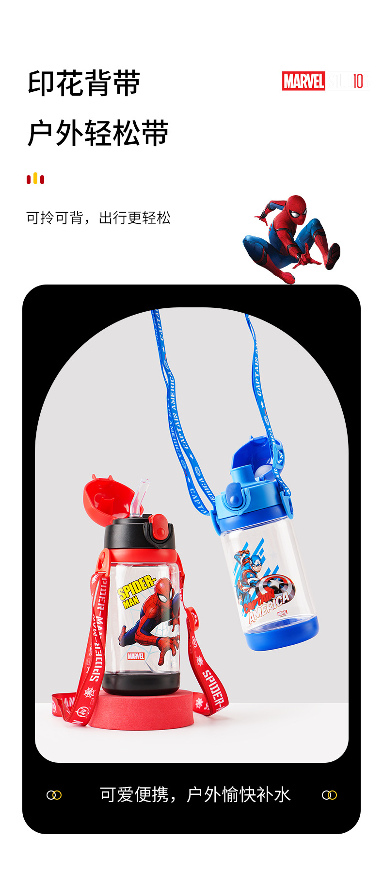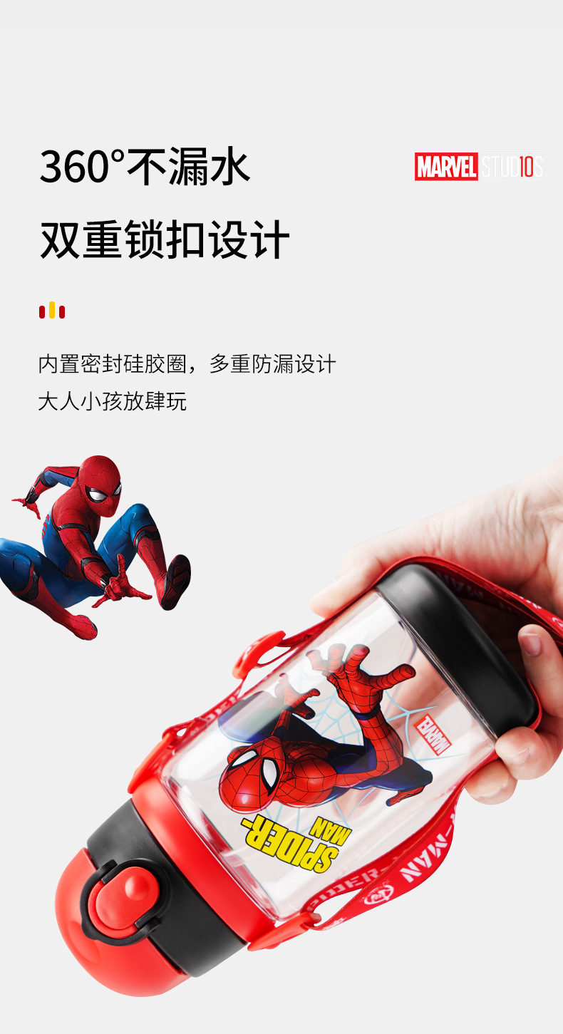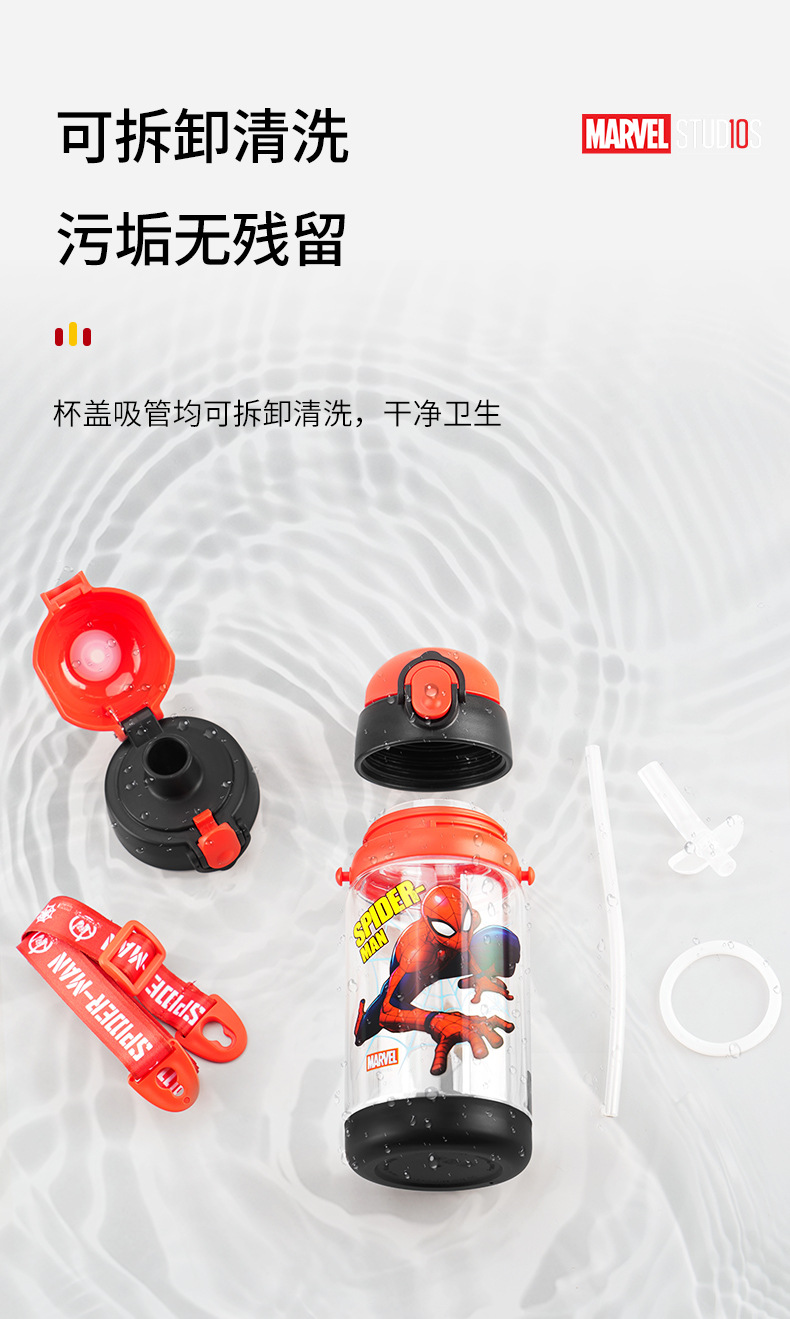 디즈니 어린이 물컵 빨대 플라스틱 컵 이중 목적 초등학생 휴대용 낙하 방지 컵 소년 소녀 아기 물병