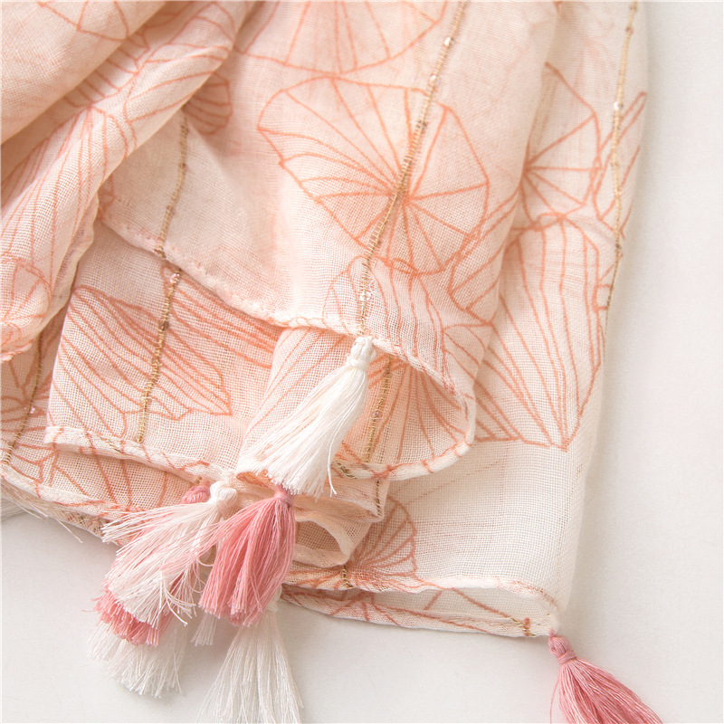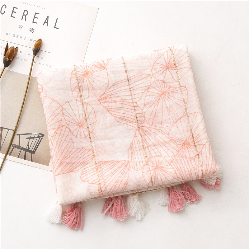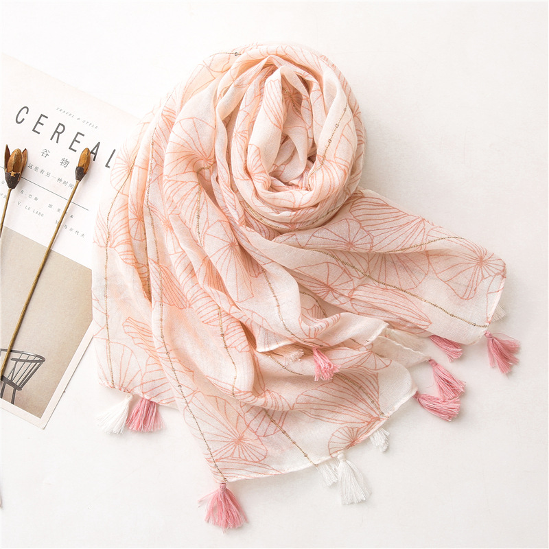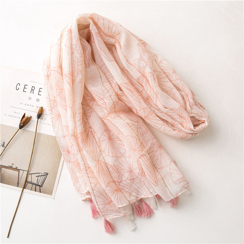 노화 감소 핑크 면 및 린넨 스카프 여성용 스팽글 장식 긴 한국식 모든 매치 인쇄 술 대형 숄 홀리데이 스카프스토어 가기